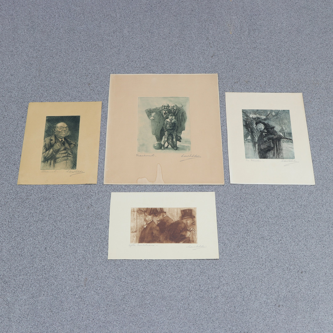 4291289. AXEL EBBE. Ætsninger, 4 stk. Signeret.