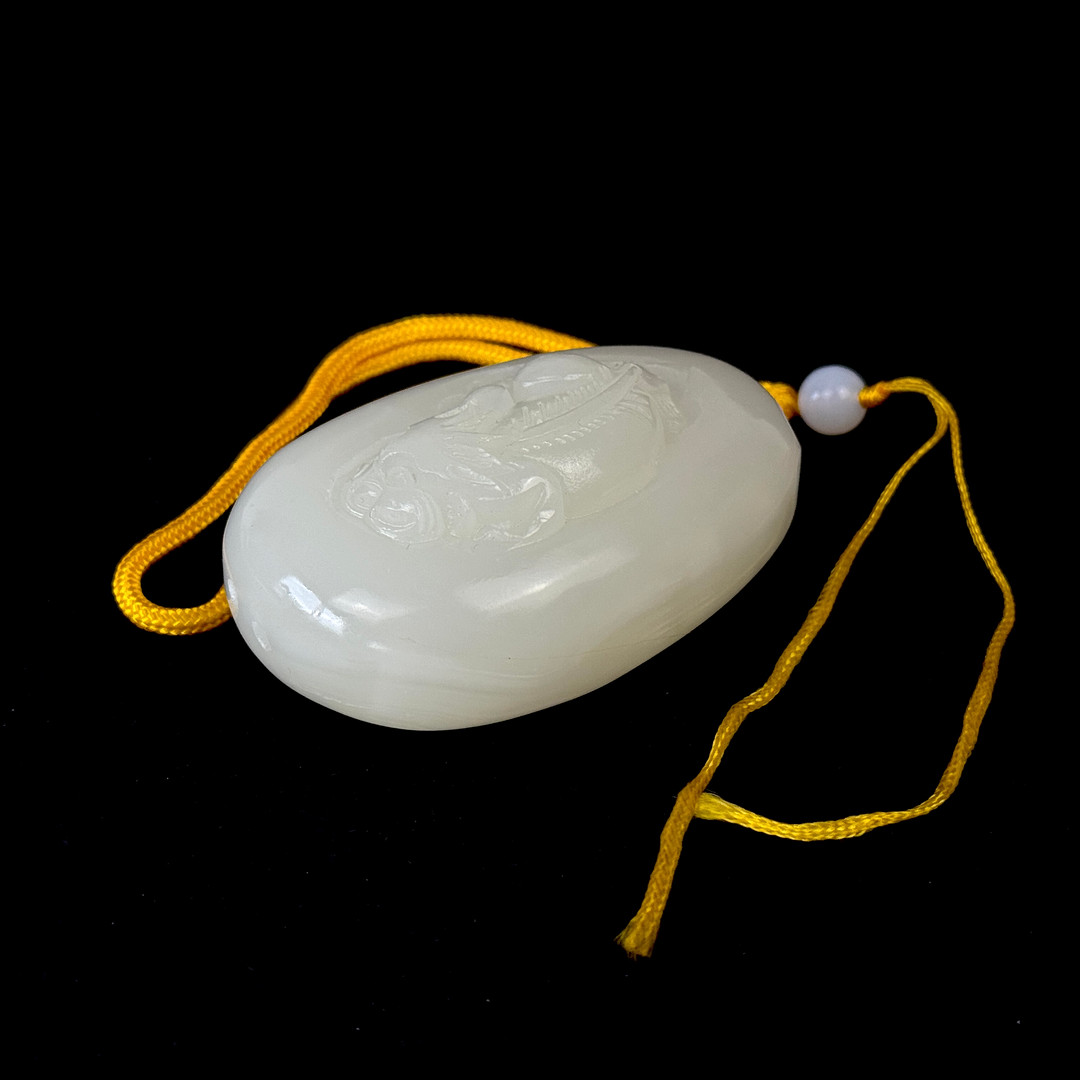 4292742. KINESISK UDSKÅRET FÅREFEDT JADEFIGUR.