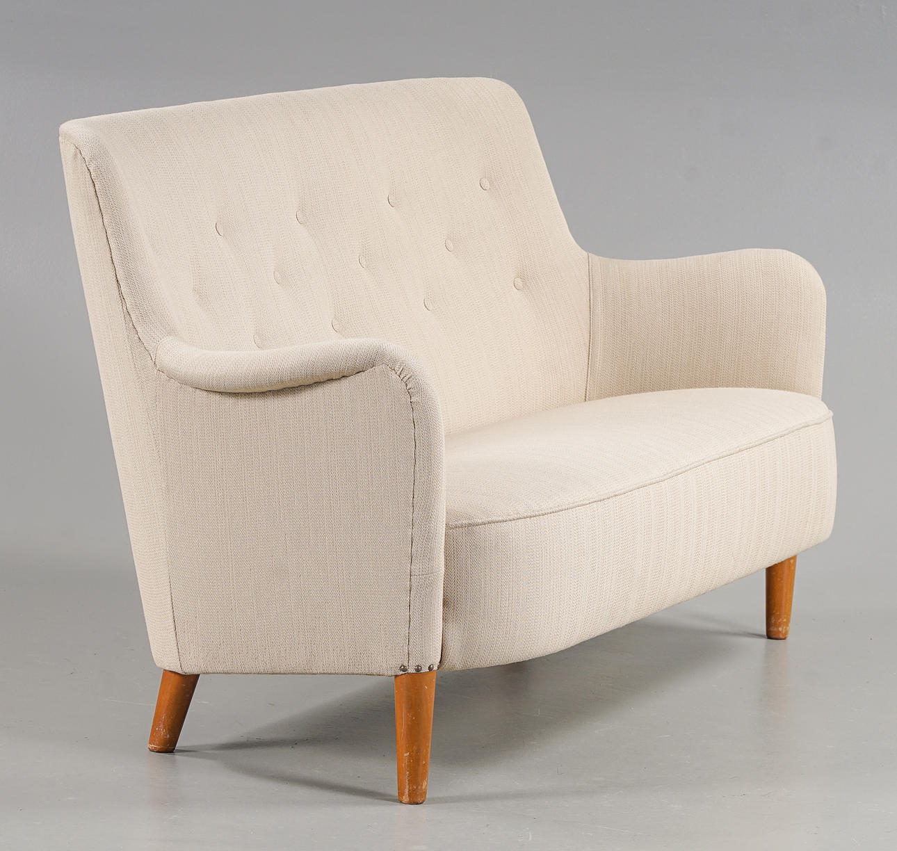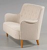 Designet i 1934, nybelagt med let tekstilbetræk. Ben i bundet birk.