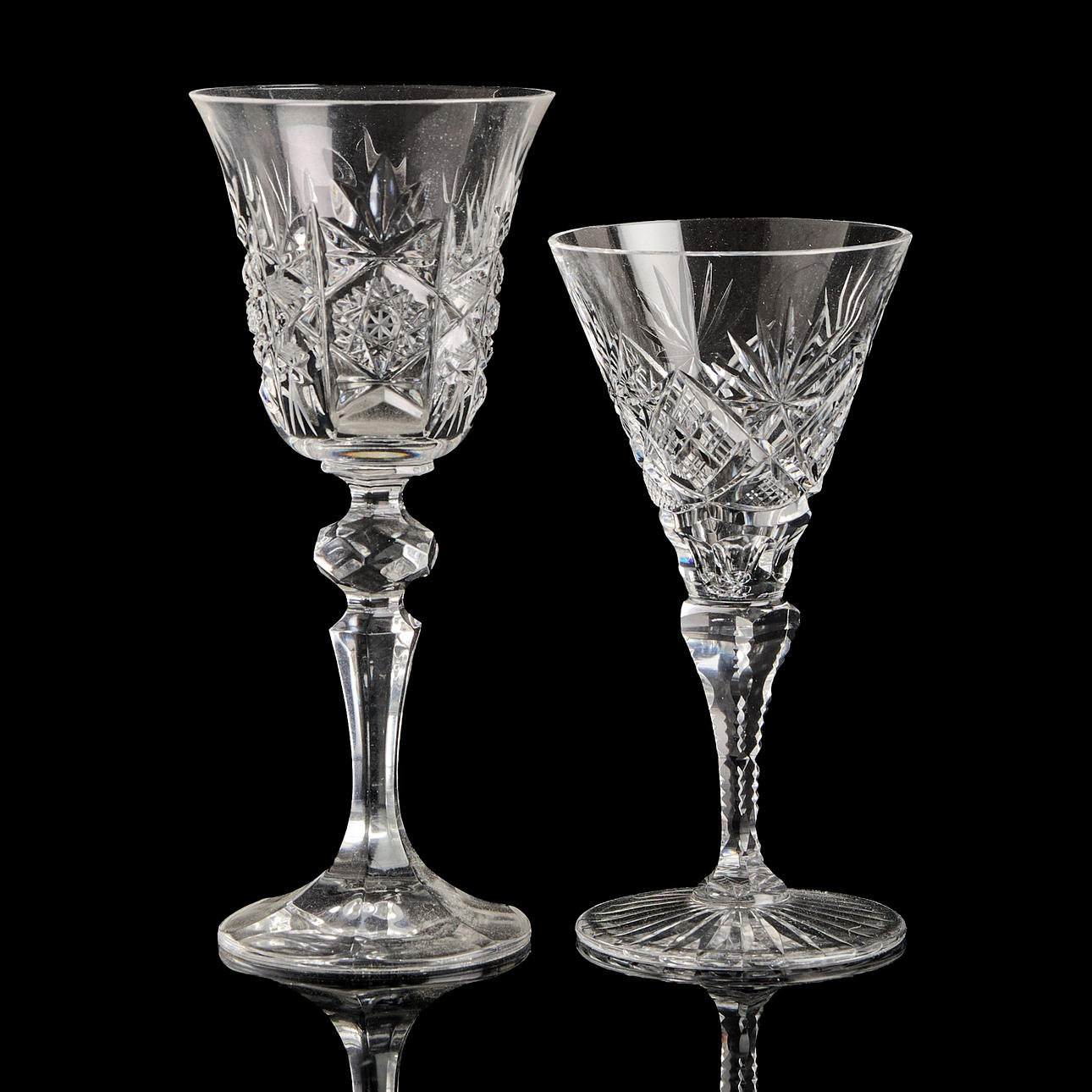 KARAFLER, 6+2 glas sherryglas, 20. århundrede.