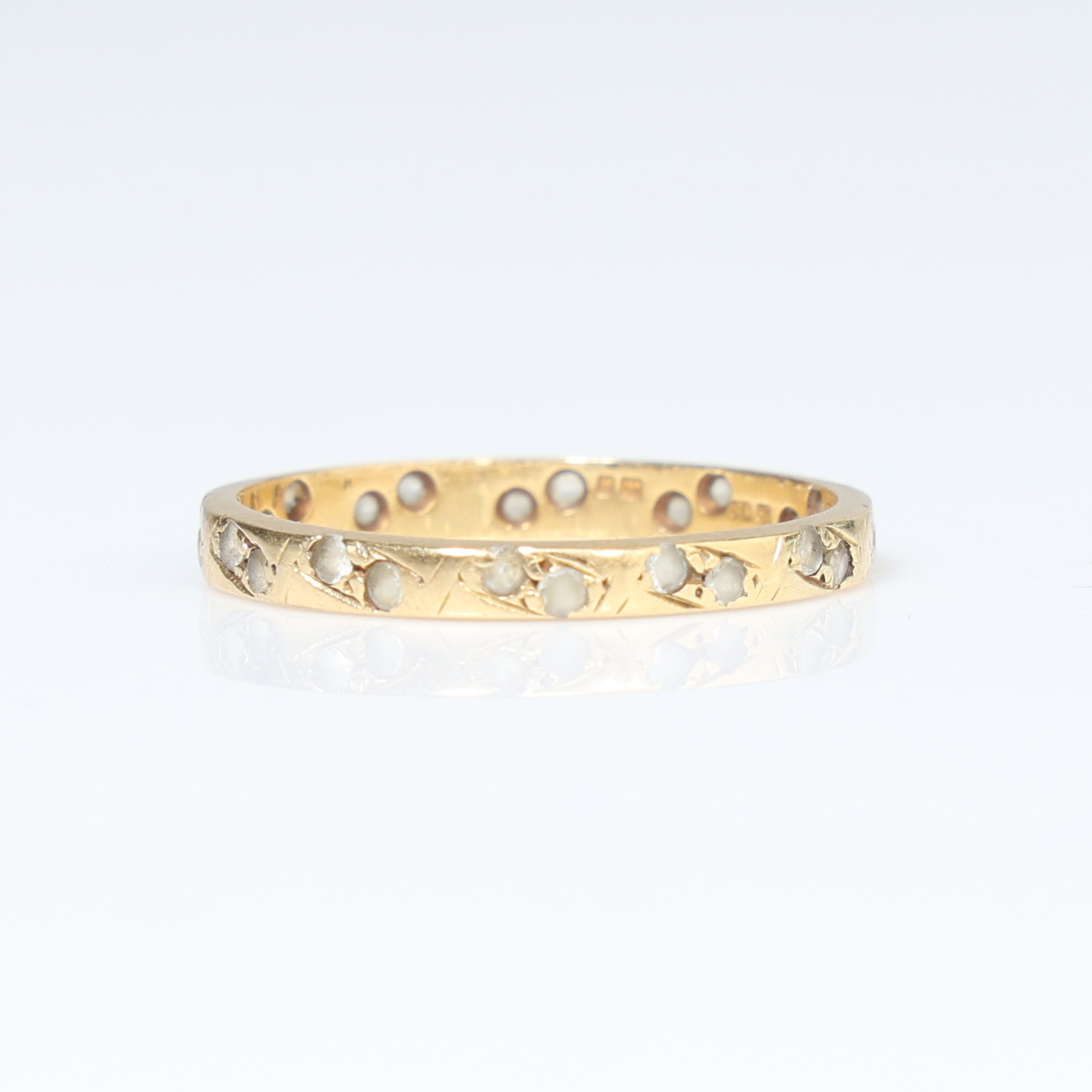4296398. 18 KARAT GULDSTEN SÆT RING FULD EVIGHEDSRING.