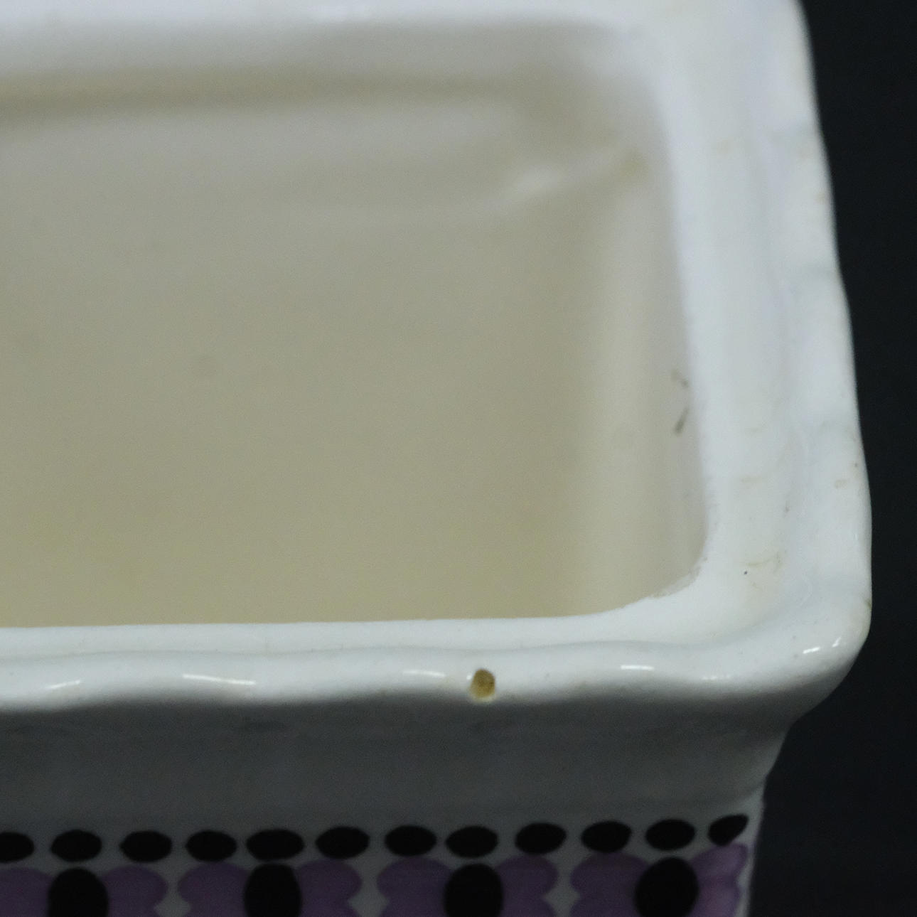 Brugsslitage, nogle små kantflis, revner.