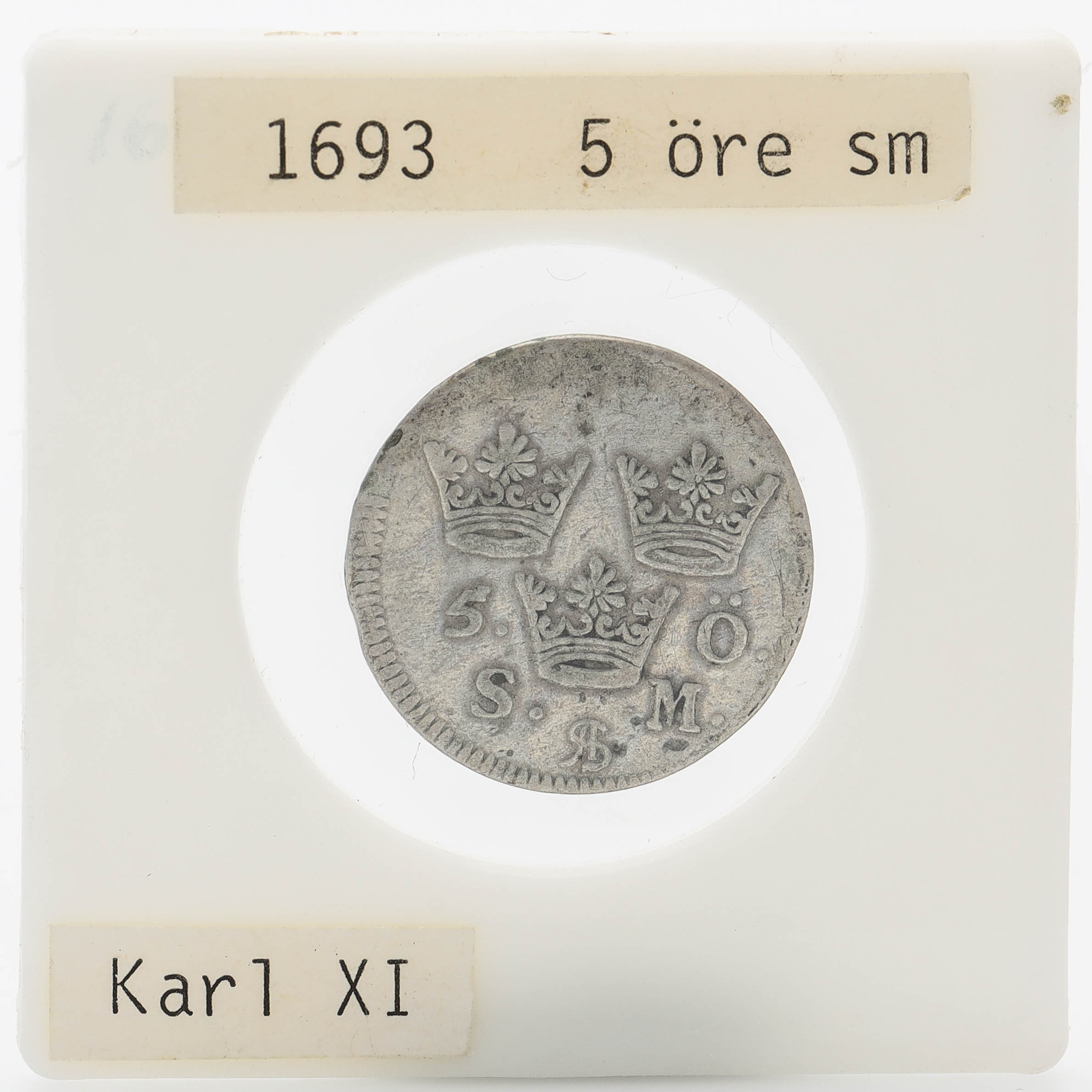 4296820. Sølvmønt, Karl XI, 5 öre, 1693.