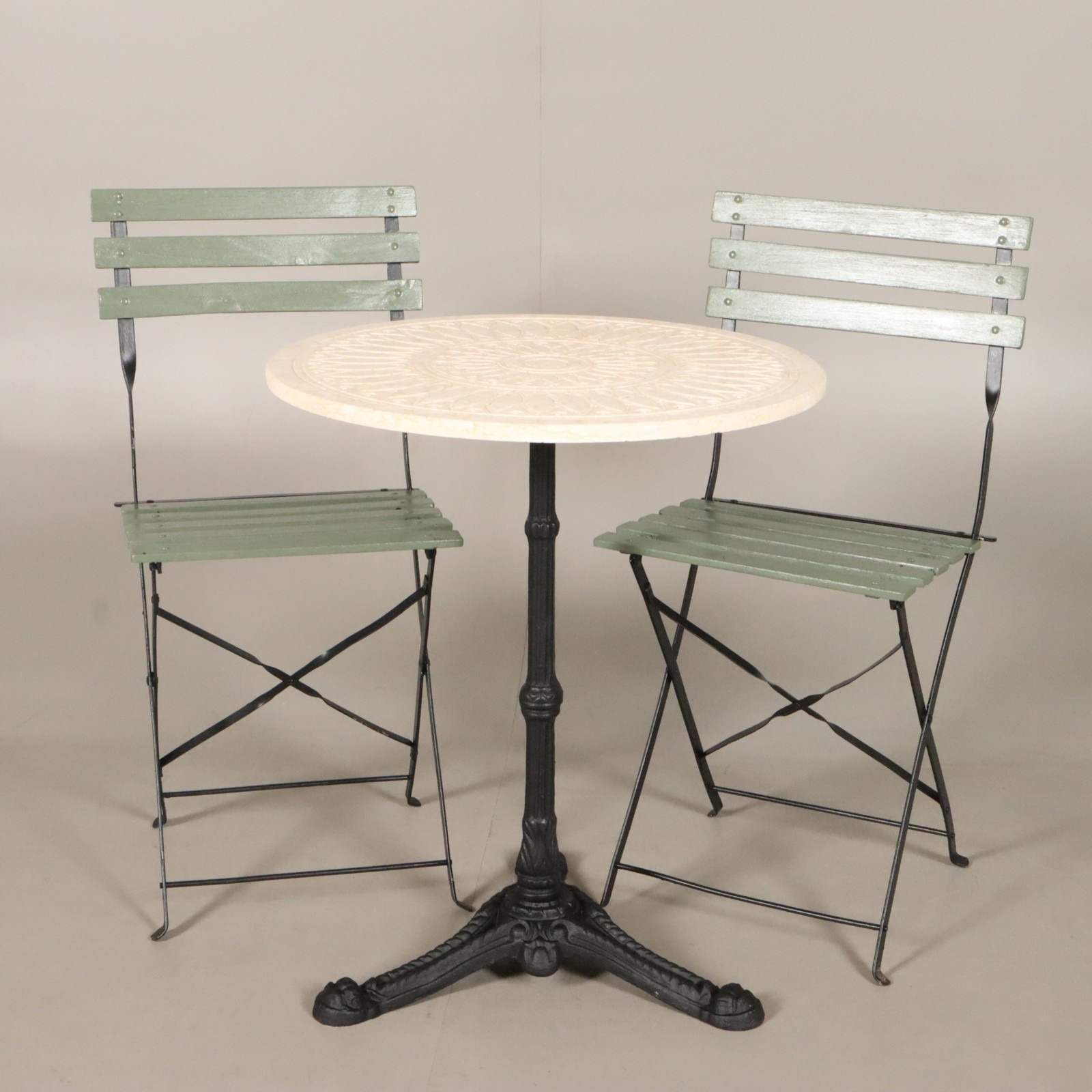 4296837. CAFE MØBLER, 3 stk., træ/metal/sten.