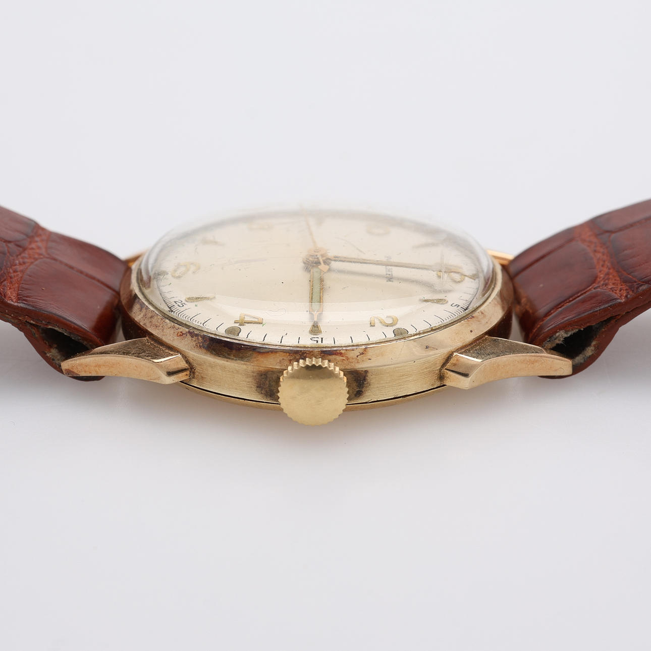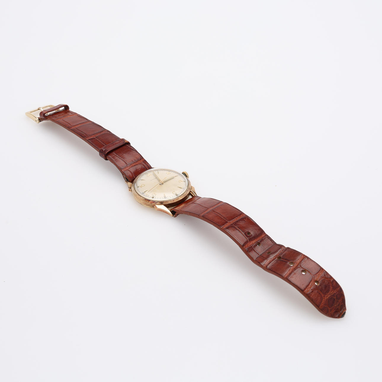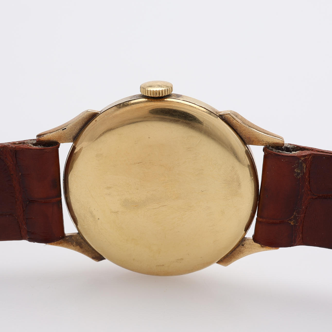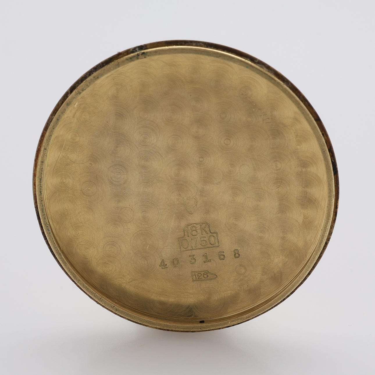 18k guld, etui mærket 403168, diameter 31 mm, med læderrem.