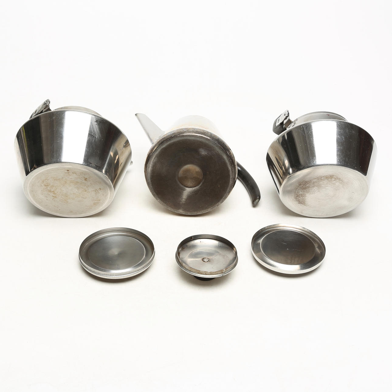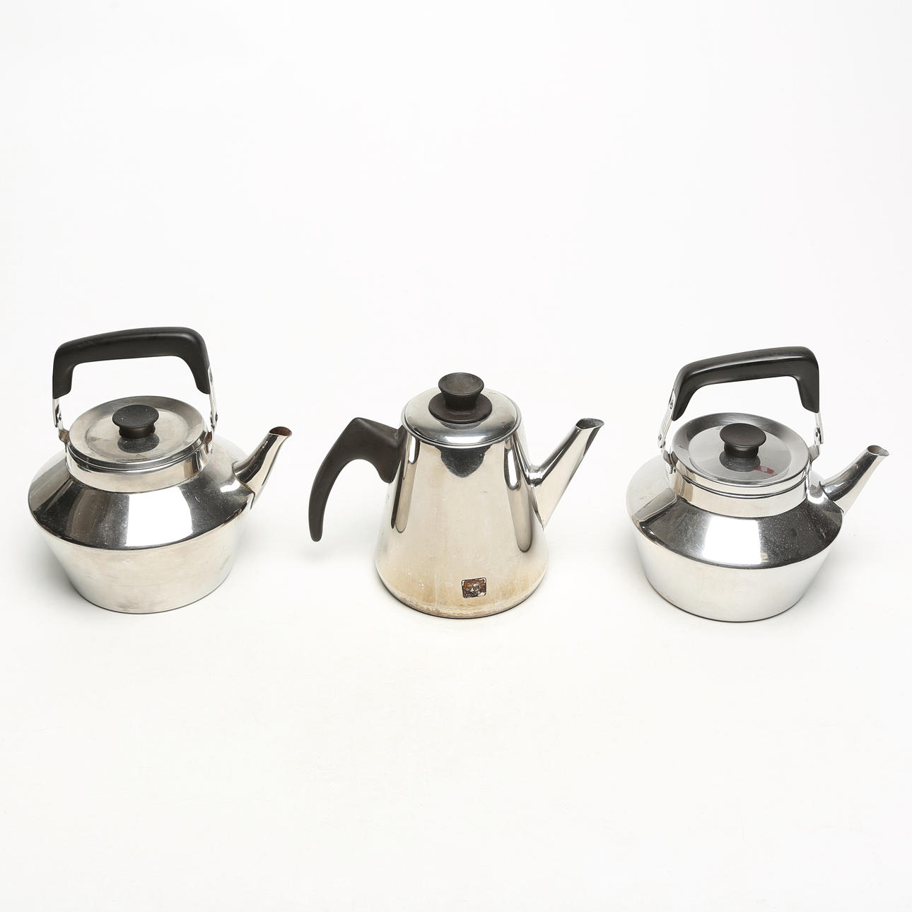 4298227. Et sæt med 3 kander, rustfrit stål.