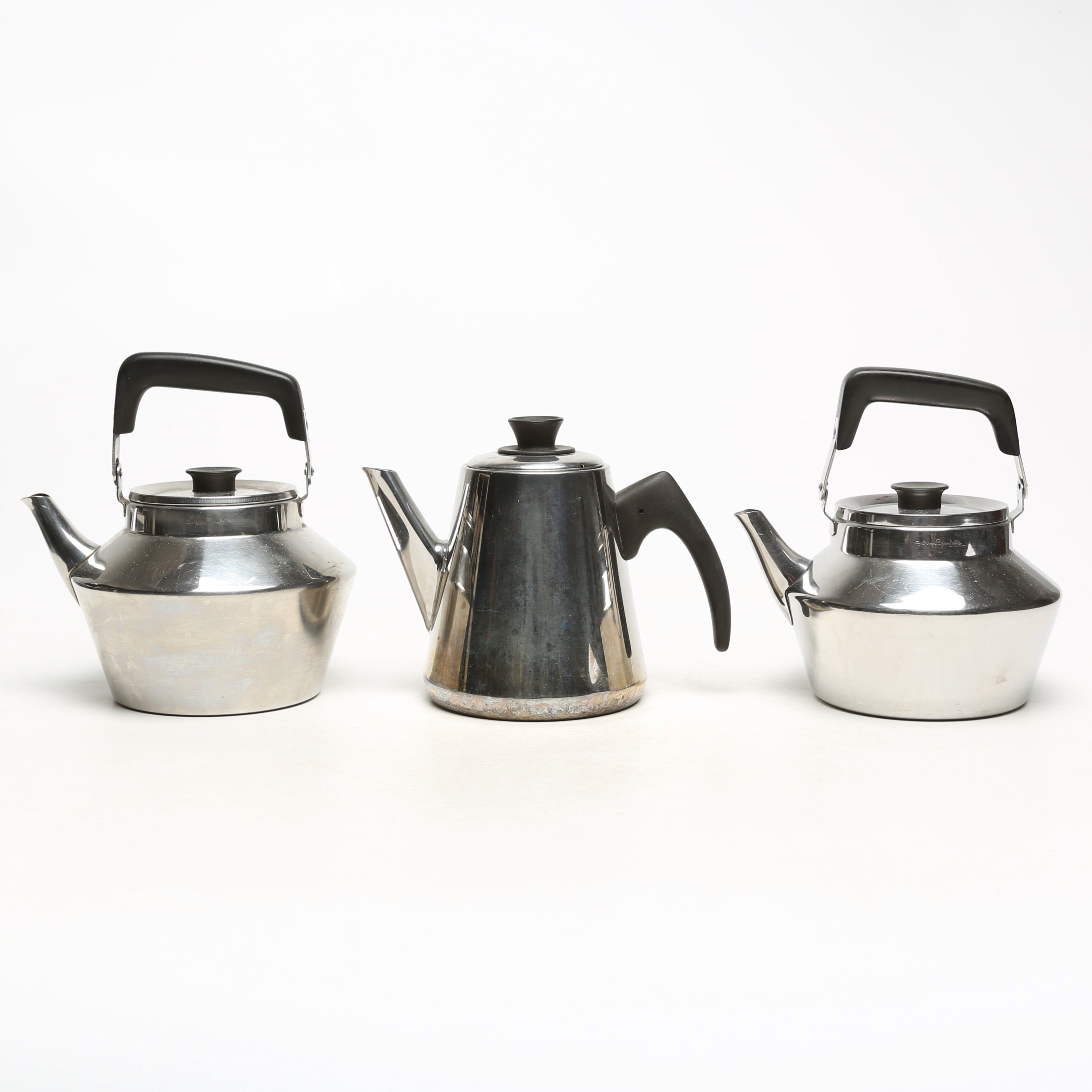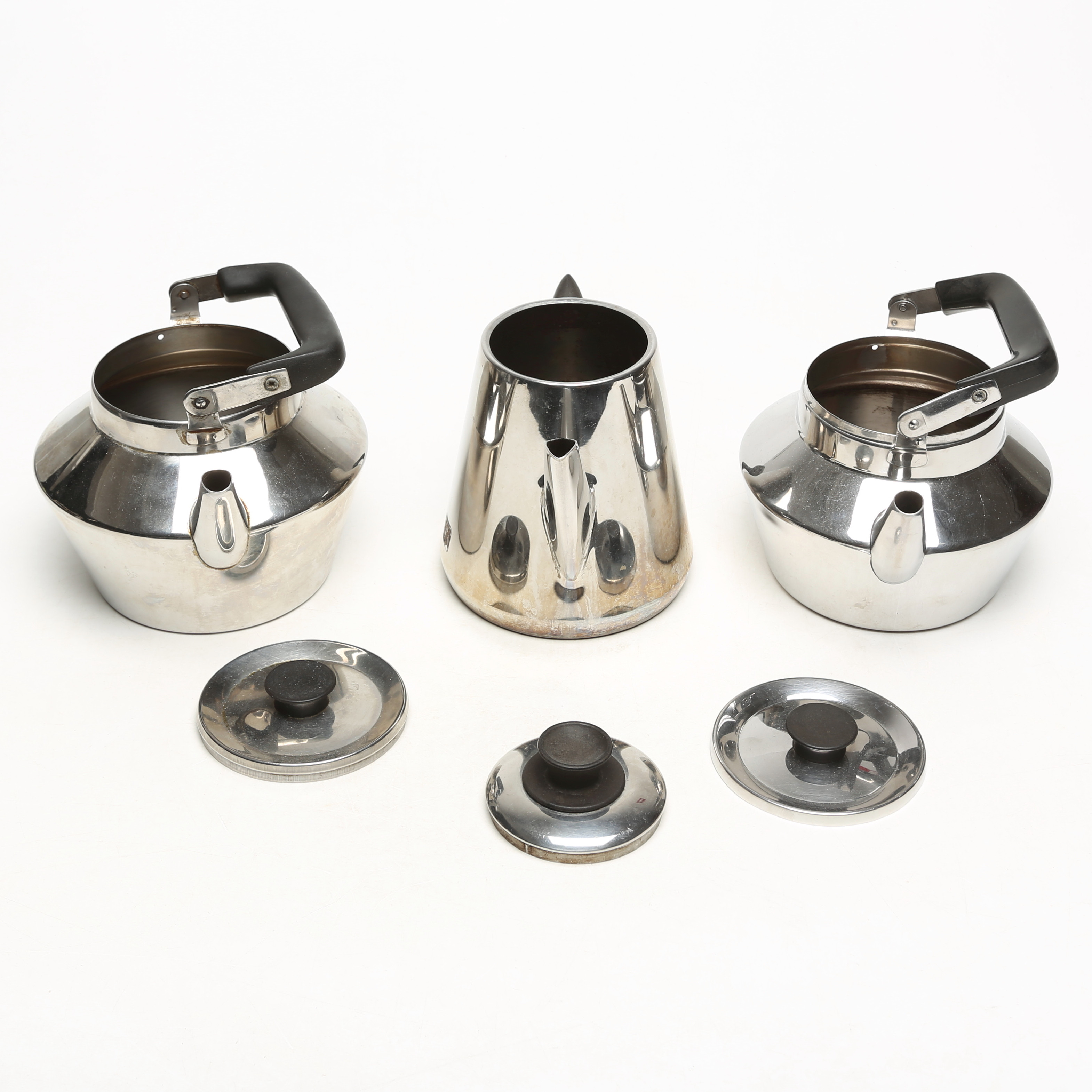 4298227. Et sæt med 3 kander, rustfrit stål.
