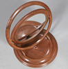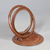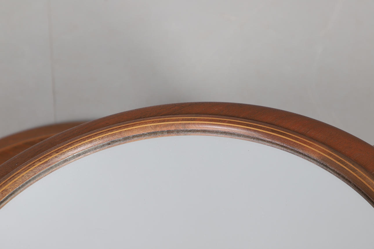 Et moderne toiletbordspejl med et cirkulært spejl og cirkulær formet base. 37,5 cm høj, base 36 cm diameter.