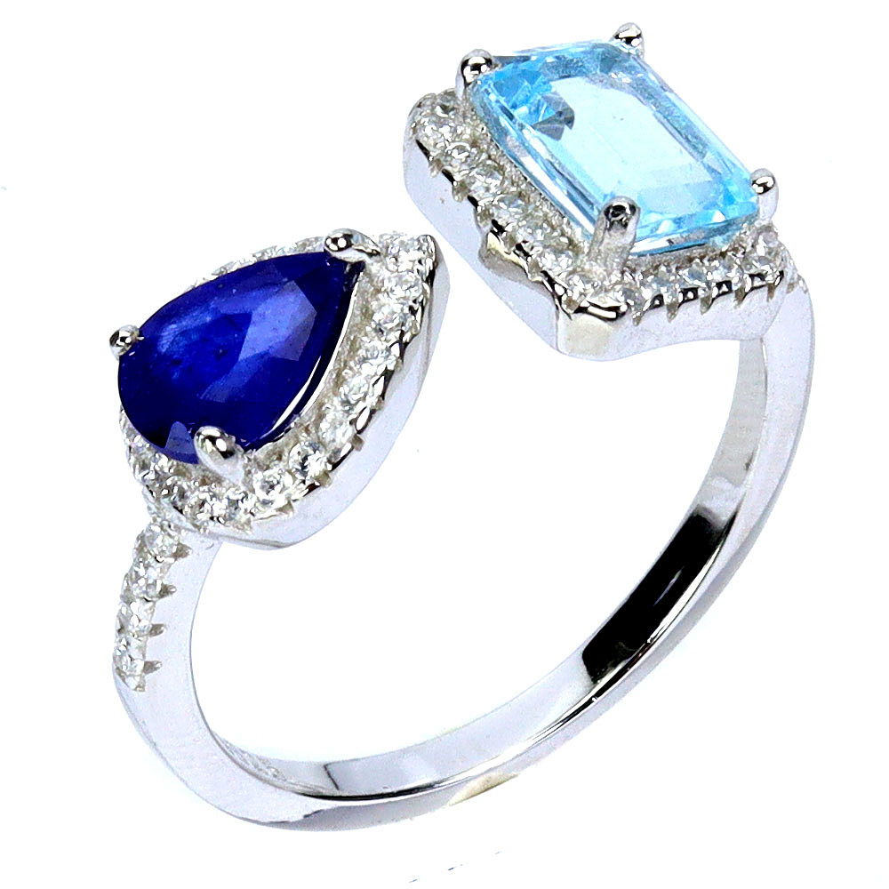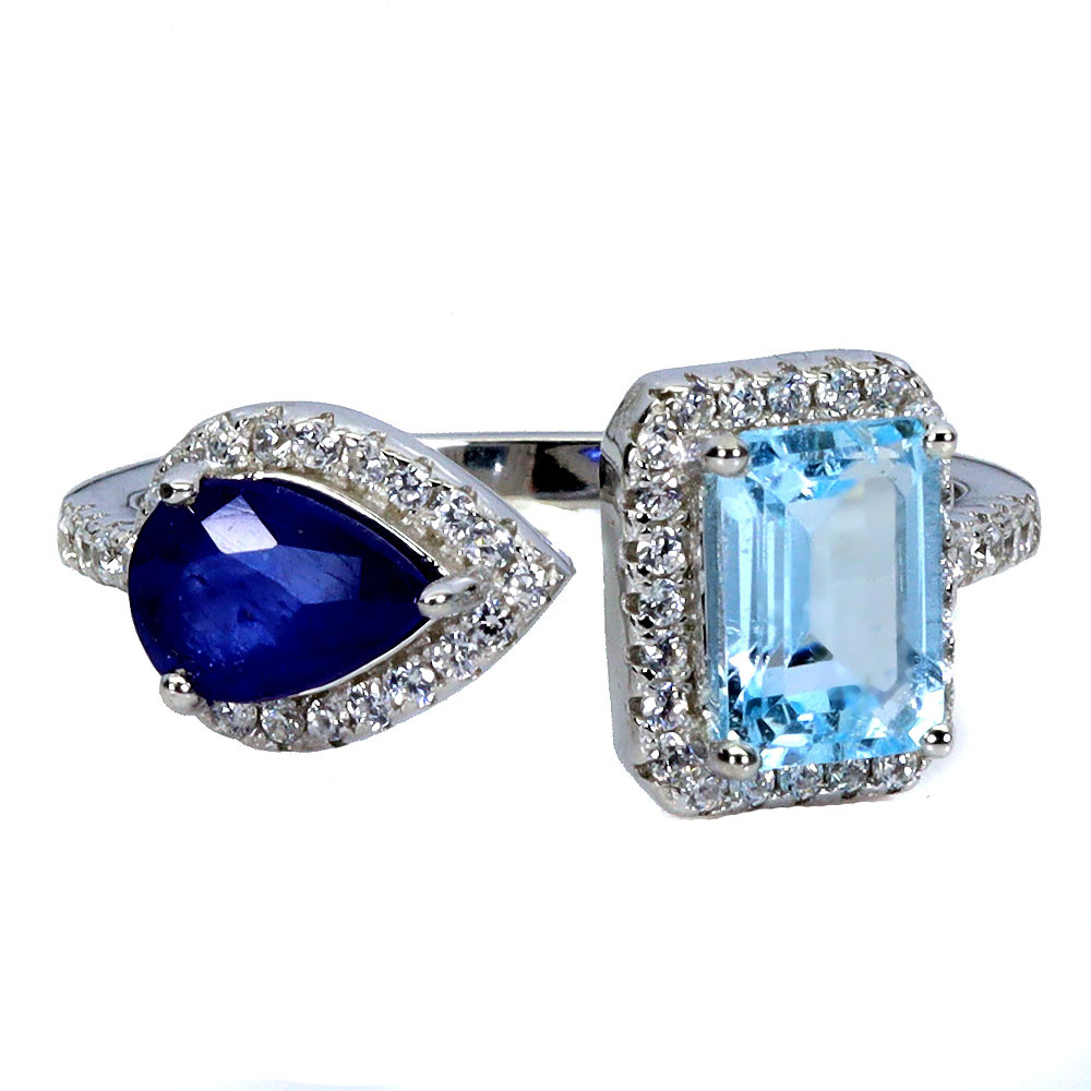 4298520. SAFIR OG BLÅ TOPAS SØLV RING.