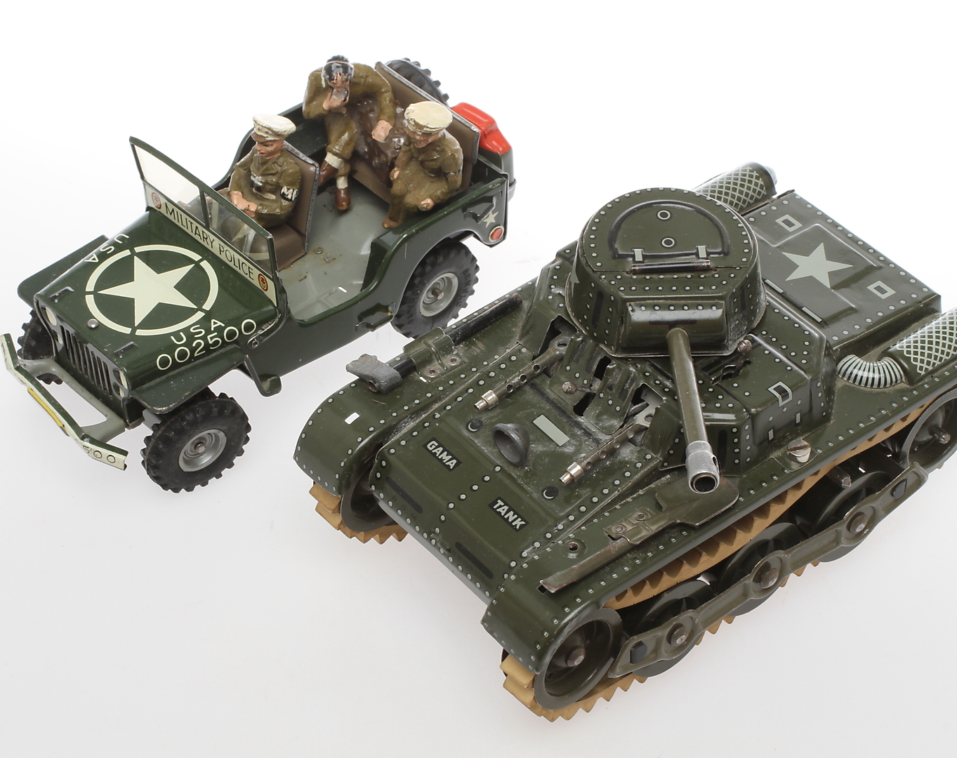 429864. GAMA tank og ARNOLD Willys Jeep.