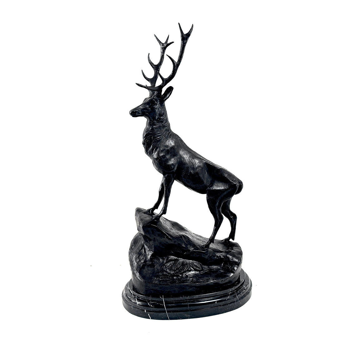 4299206. PAR STORE BRONZEFIGURER AF HJORTE PÅ MARMORBASER.