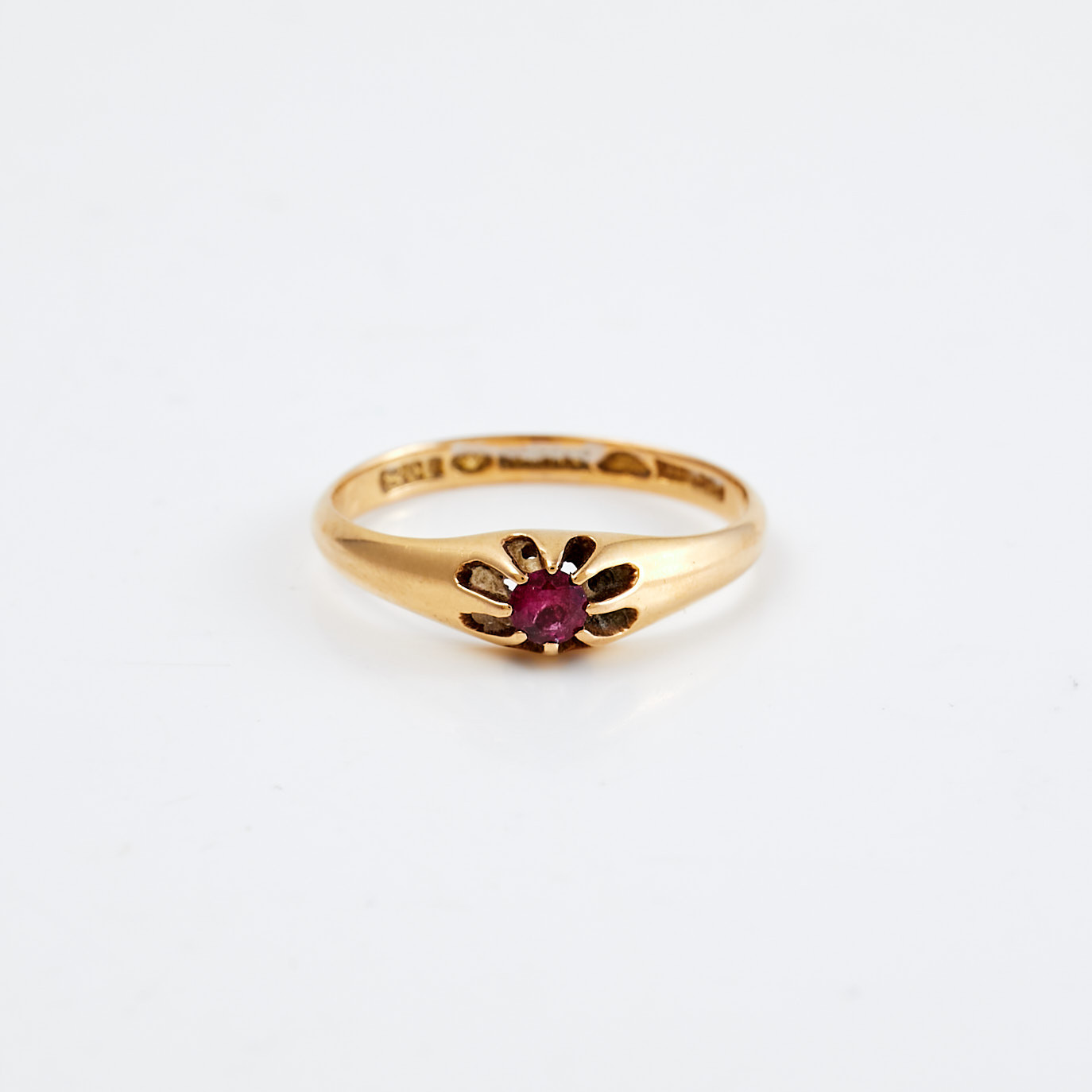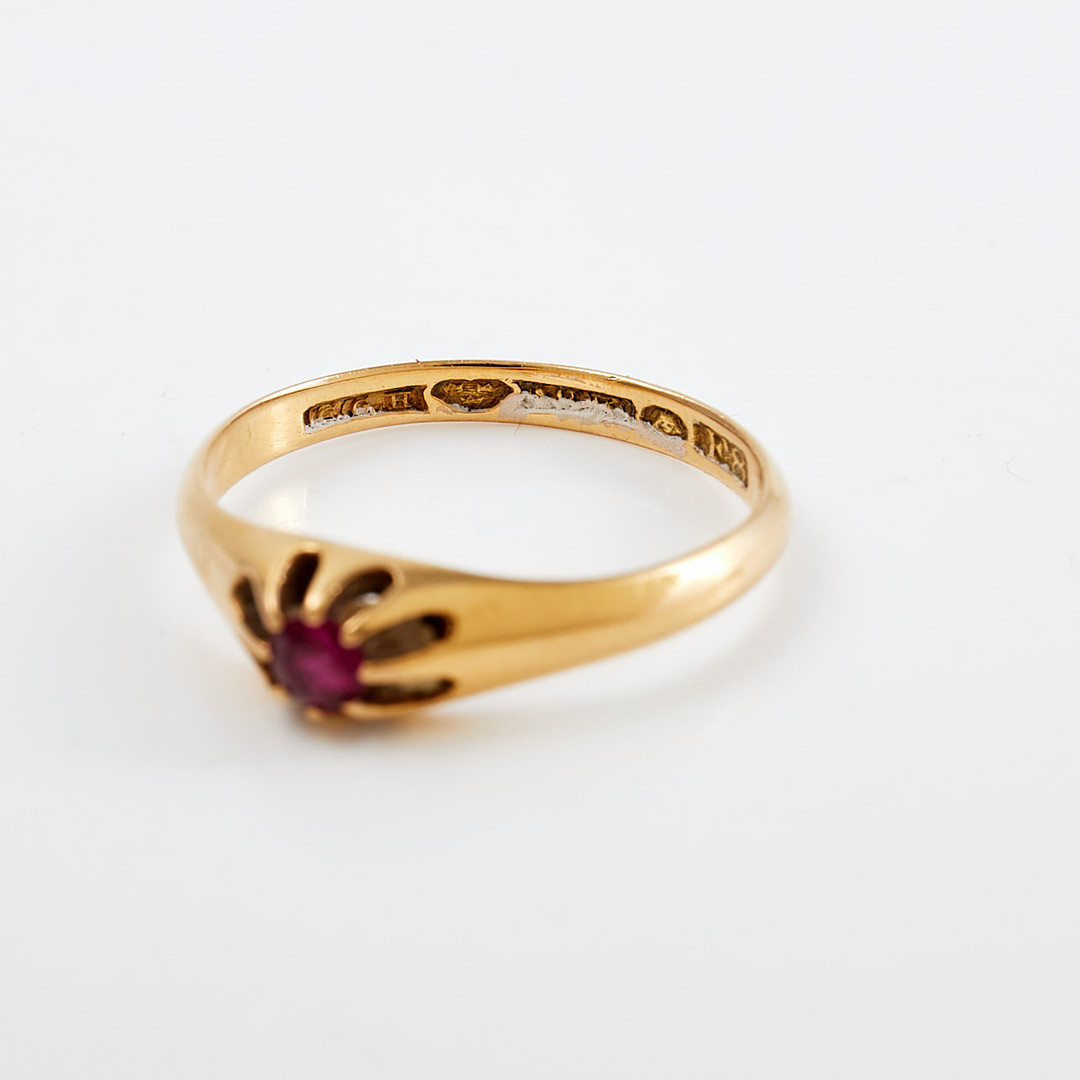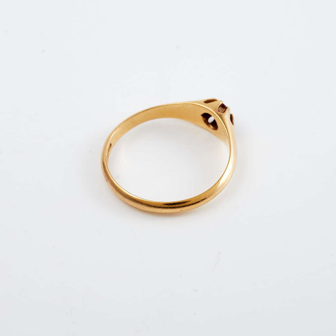 4299218. RING, 18kt guld, med rød ædelsten, 1932.