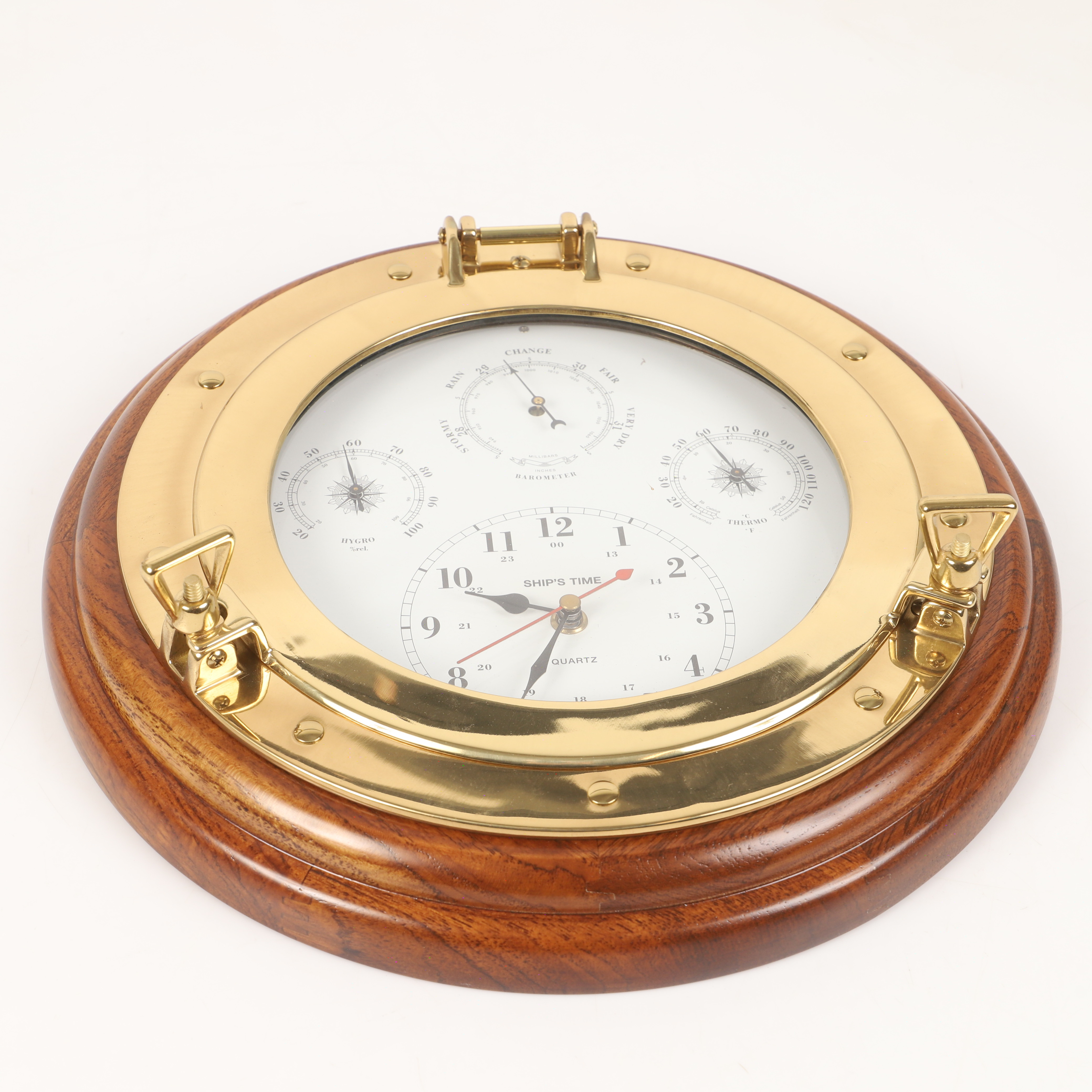 4299922. VÆGUR i form af en bådventil, træ/messing, 1900/2000-tallet.