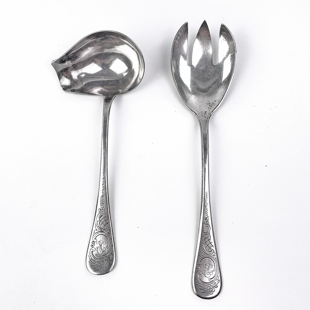 4300183. PARTI NYSØLV. Serveringstilbehør, redskaber, 87 stk.