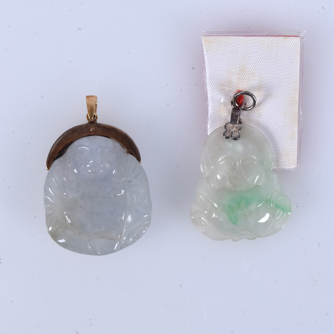 4300486. VEDHÆNG, et par, sølv og jade, 1900-tallet.