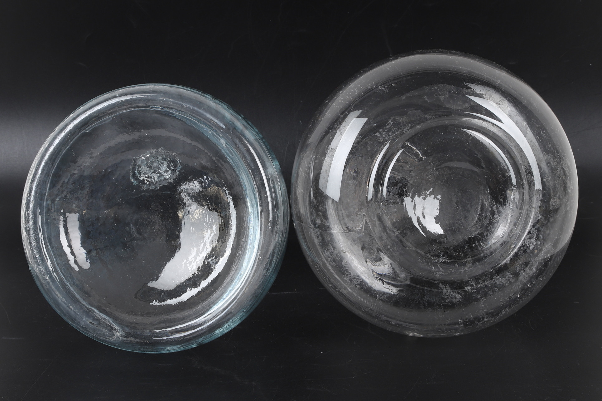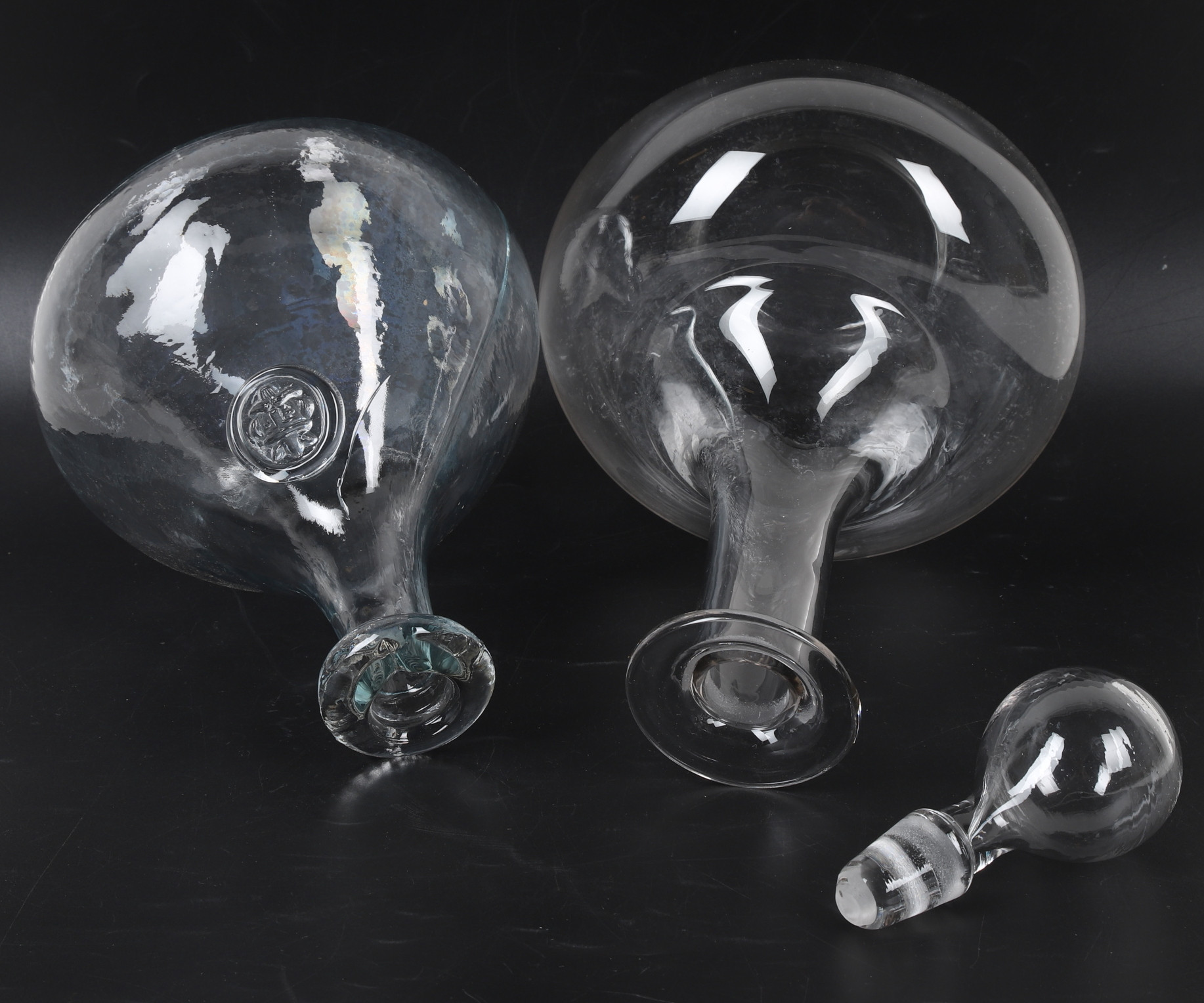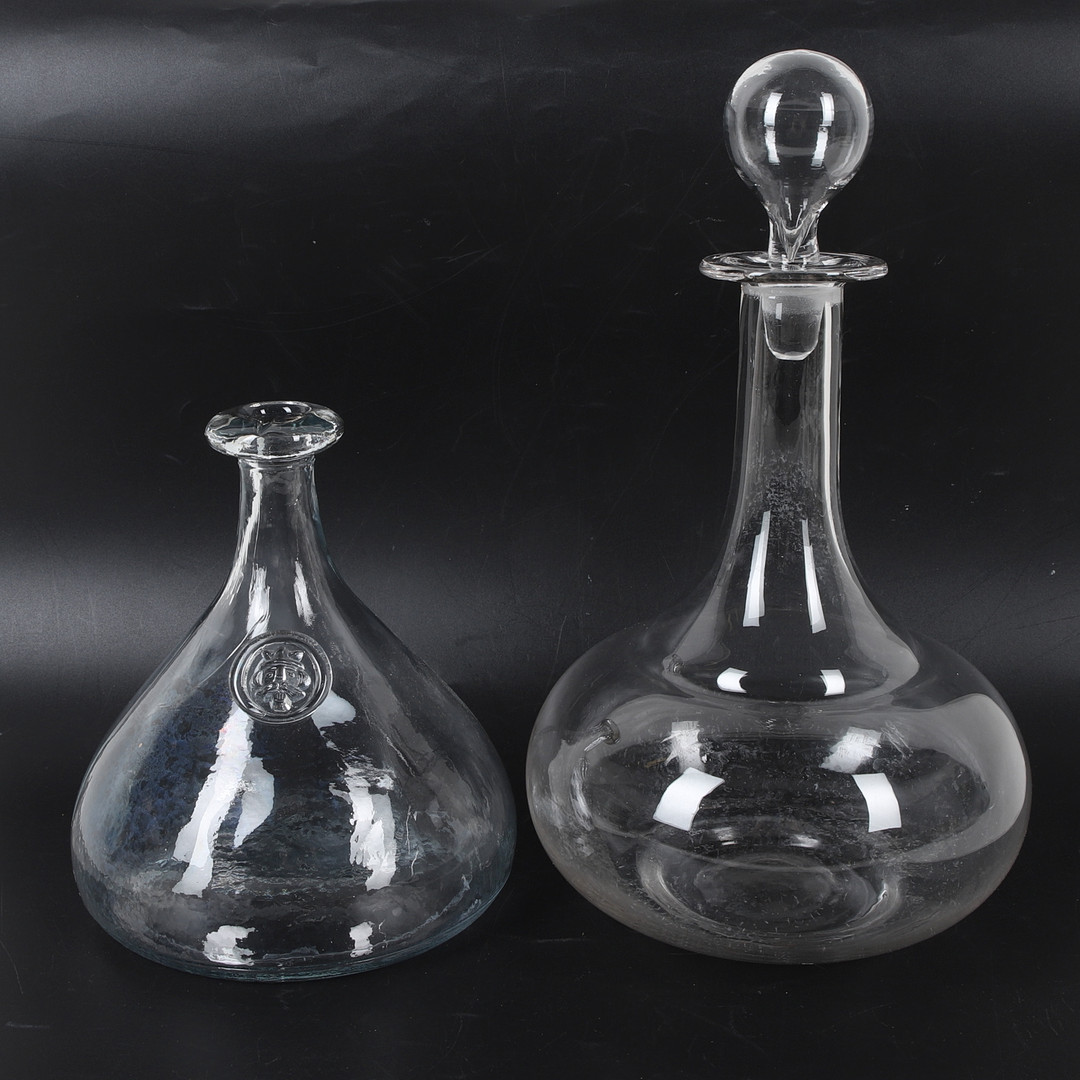 4301216. KARAFLER, 2 stk., glas, bl.a. Holmegaard, Danmark, 20. årh.