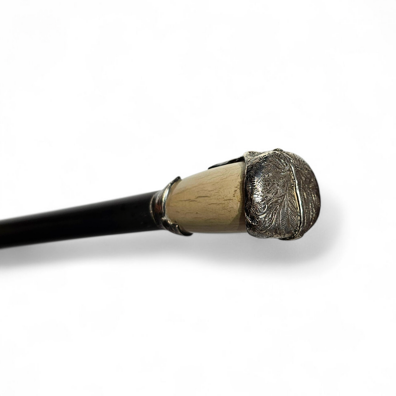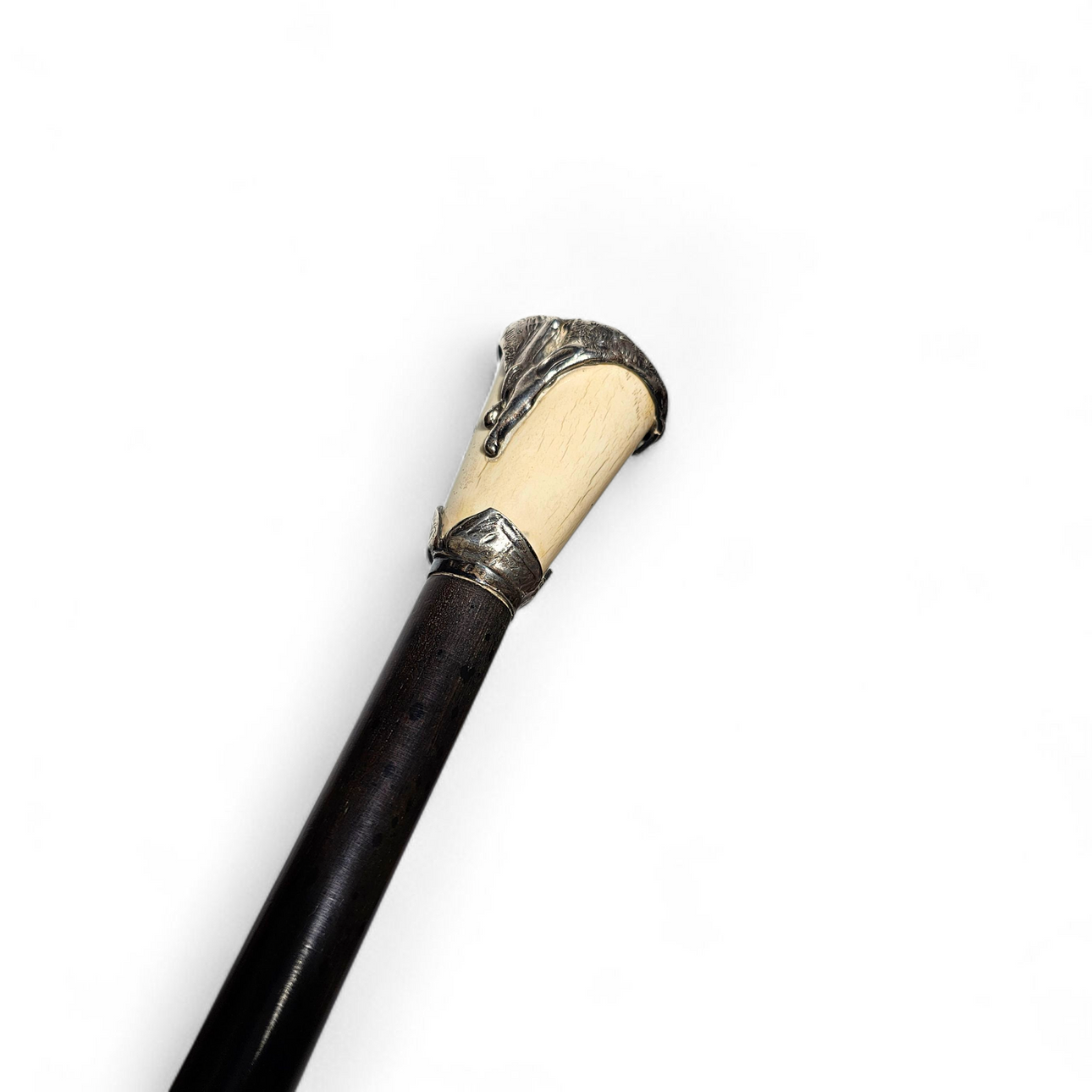 4302749. Vandrestok med knogle og sølvhåndtag.