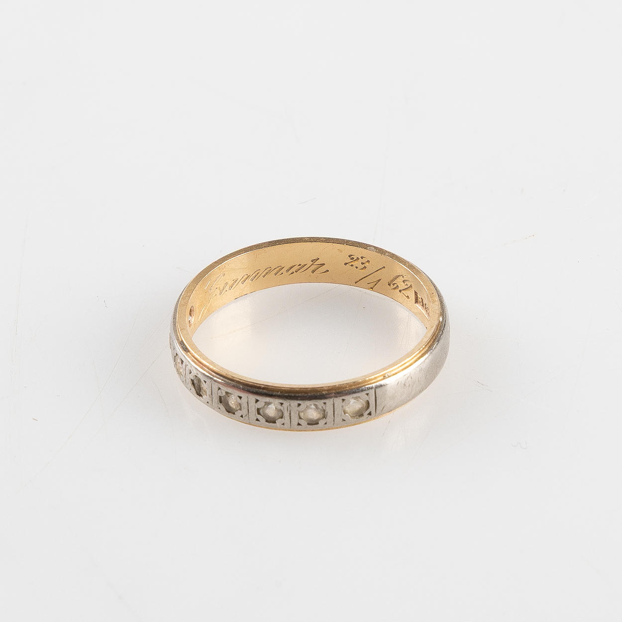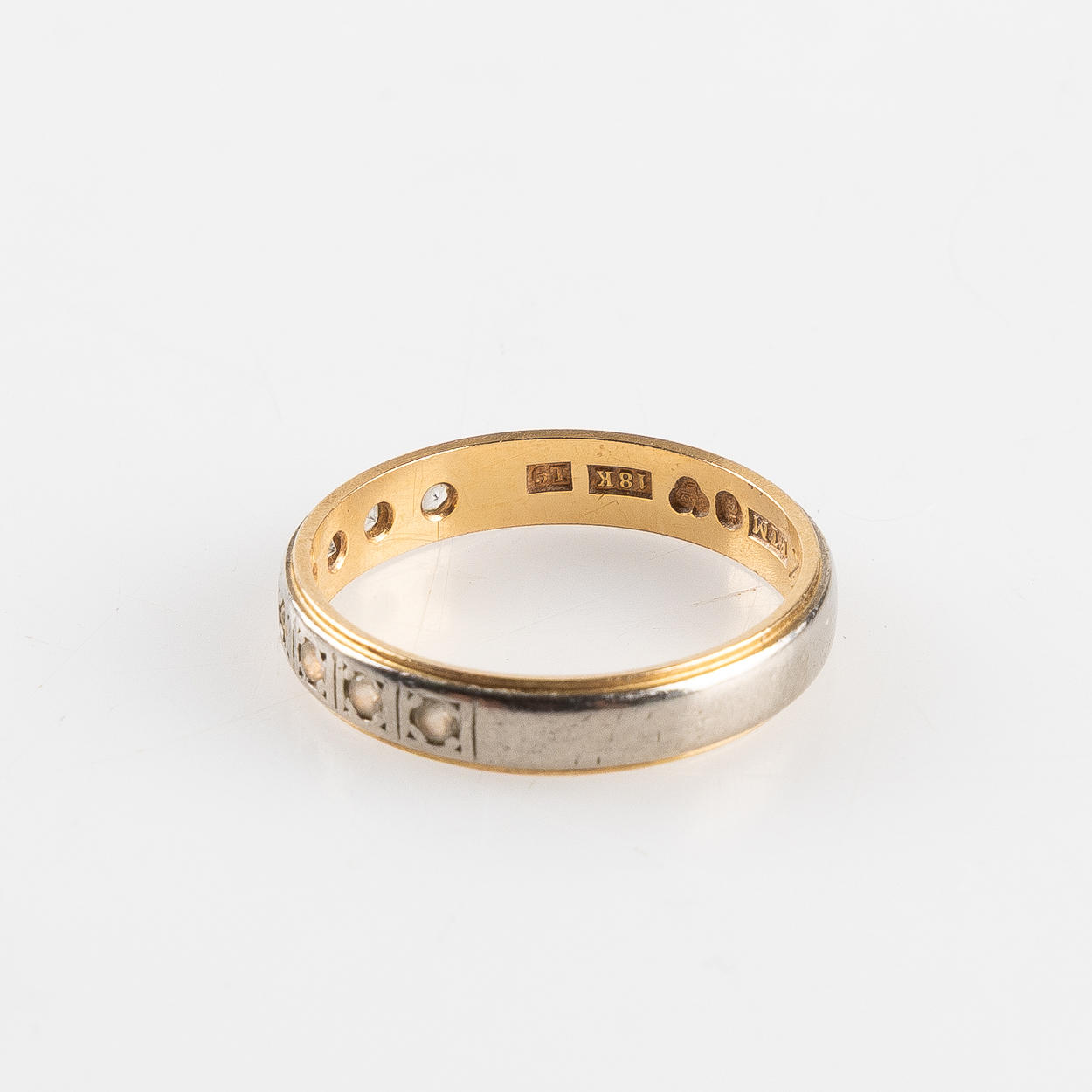 Hvidguld bånd på skinnen, sat med hvide sten. Ringstrl. ca. 17,5 mm. Vægt ca. 3,4 gram.