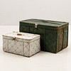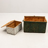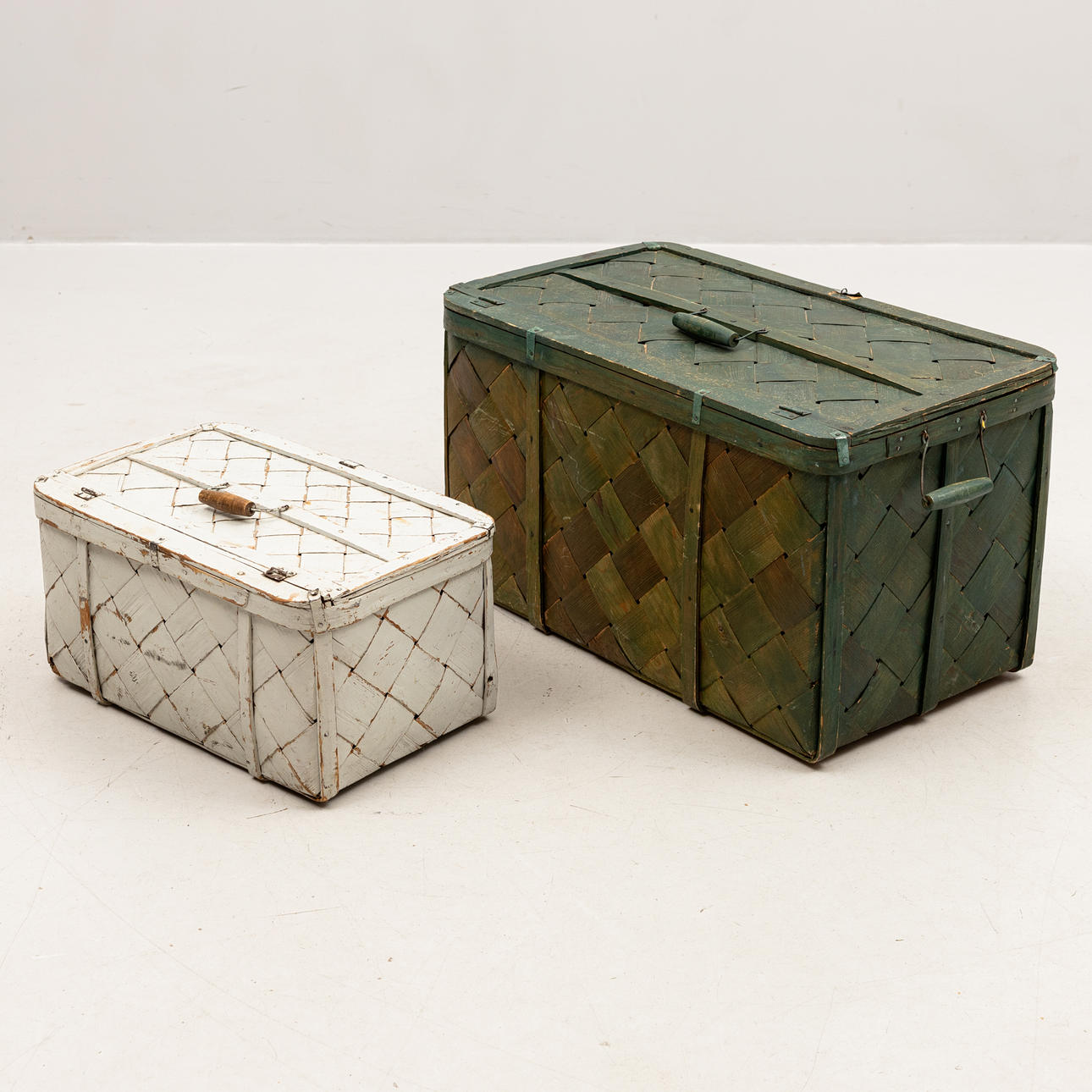 En malet grøn samt en malet hvid. Længde ca 49-67, bredde 30-39, højde 24-39 cm.