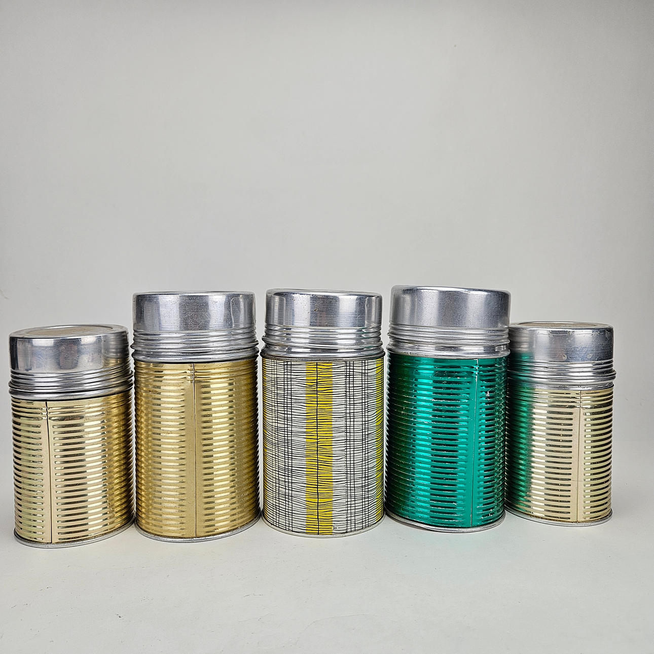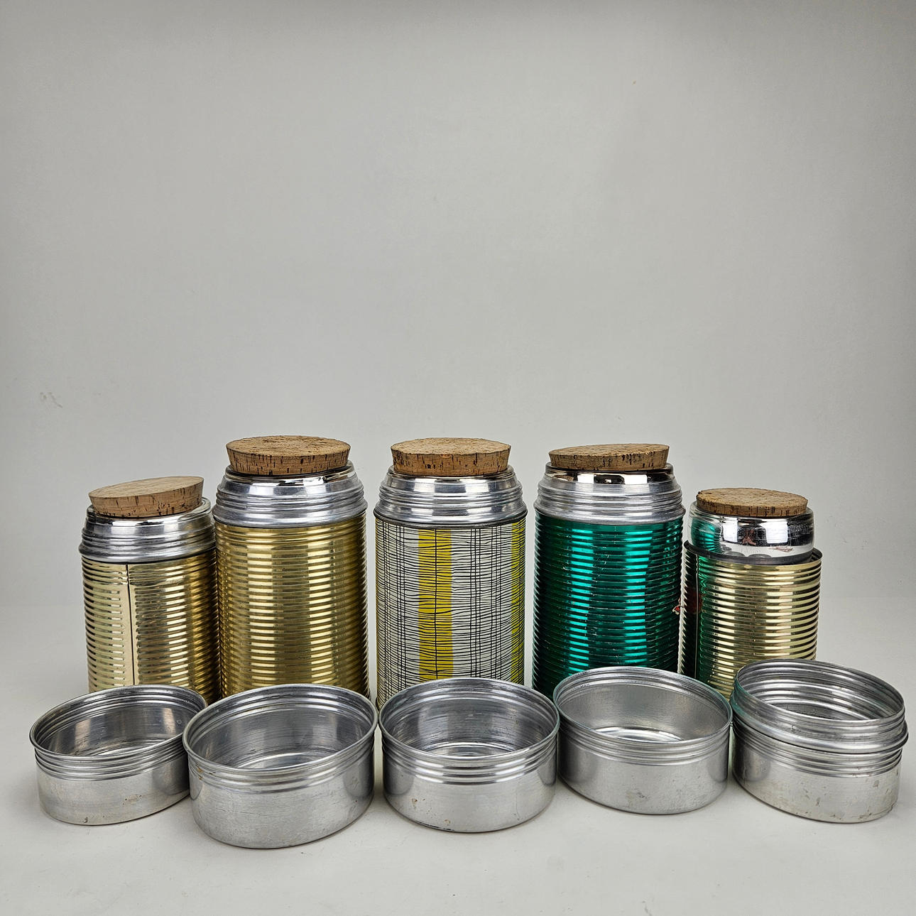 4304751. Termoser, 5 stk., metal, bl.a. „Kokhett“, AB Termoverken, Jönköping.