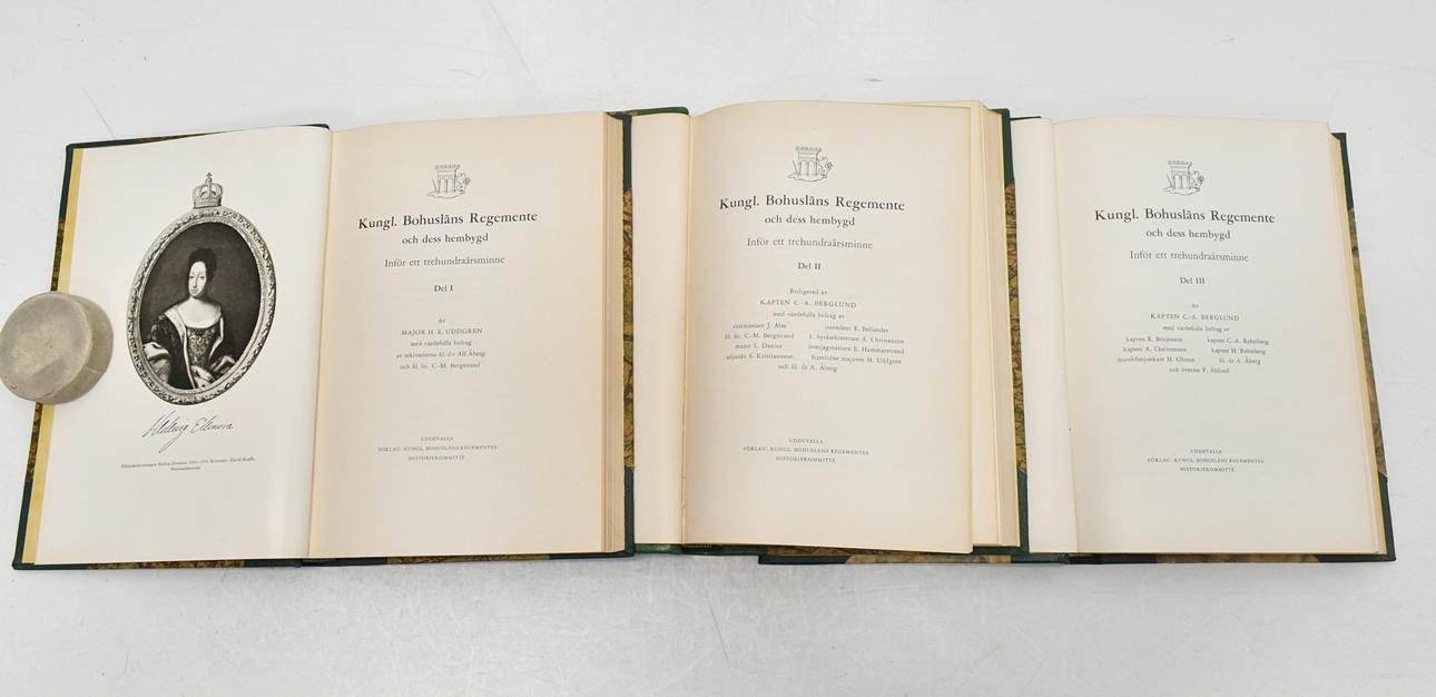 4304770. Bøger om Bohusläns Regiments historie. 8 bind.