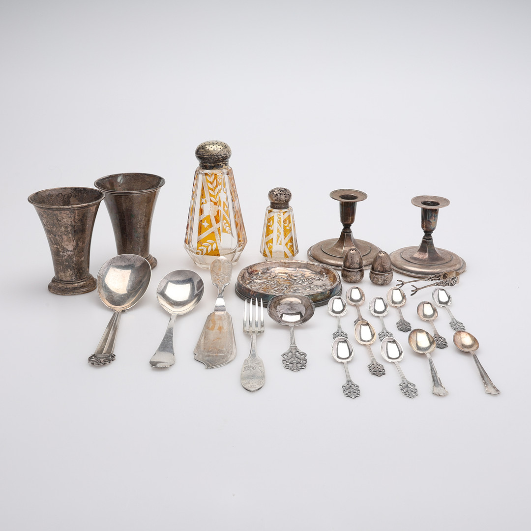 4305046. EN SAMLING SØLVGENSTANDE, 29 STYKKER, VÆGTBART SØLV Ca. 590 g.
