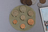 inkluderer sølvmønt fra før 1947, Falklands Crown, Kenya Shilling, £2 og 50p mønter sammen med erindringskroner, Heinz-møntsæt fra 1983, anbragt i en kontantdåse.