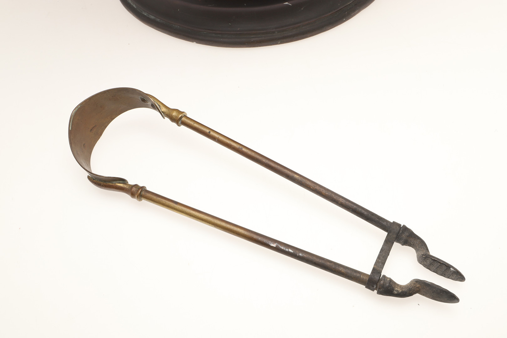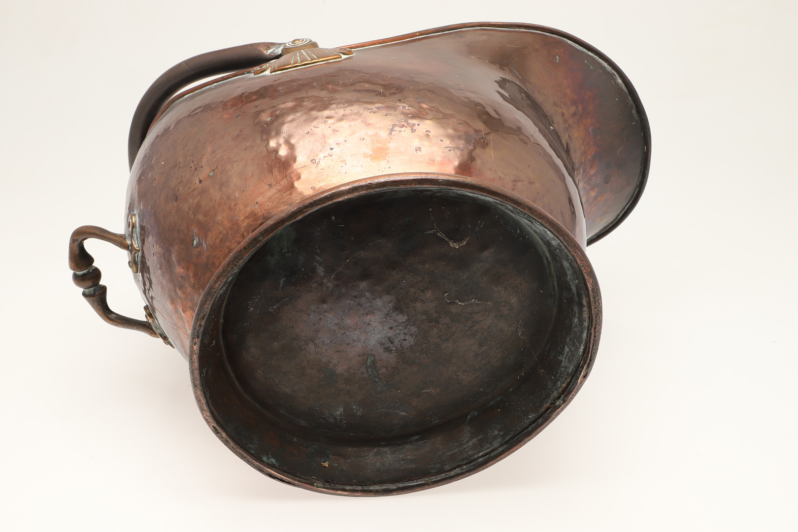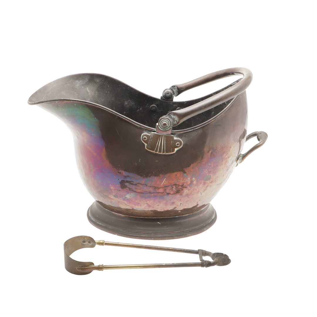 4305917. EN KOBBERKULSCUTTLE OG MESSINGTANG.