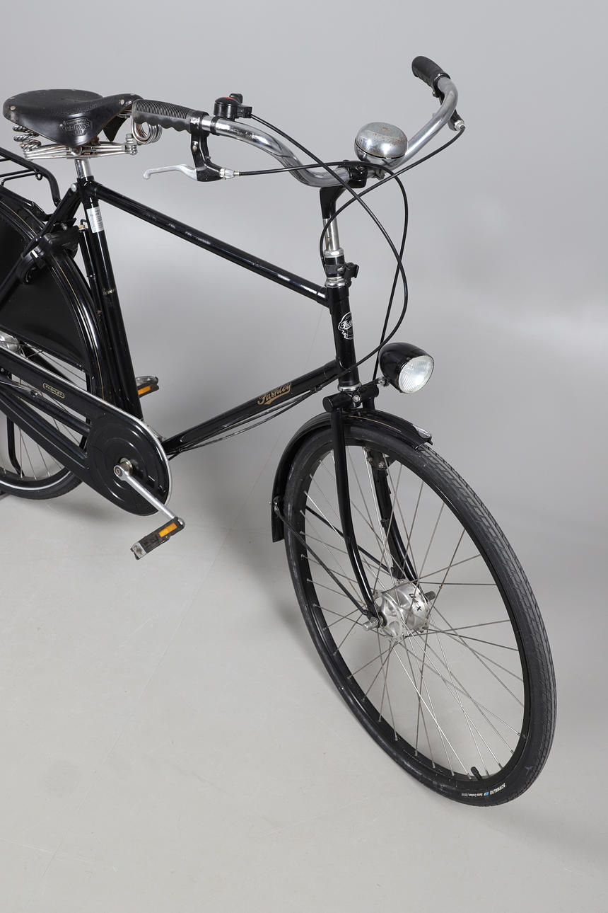 Af moderne konstruktion, rammestørrelse 23", Hjuldiameter 25.5". Fem gear, udstyret med en klokke, lampe og Brooks sadel i ægte læder.