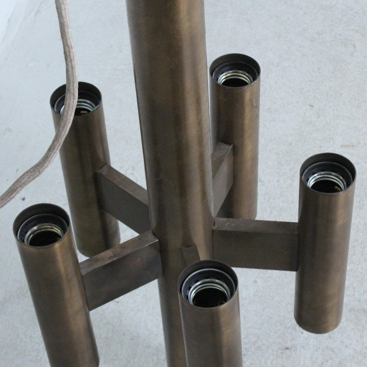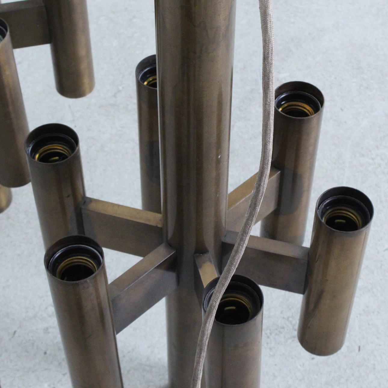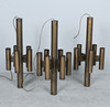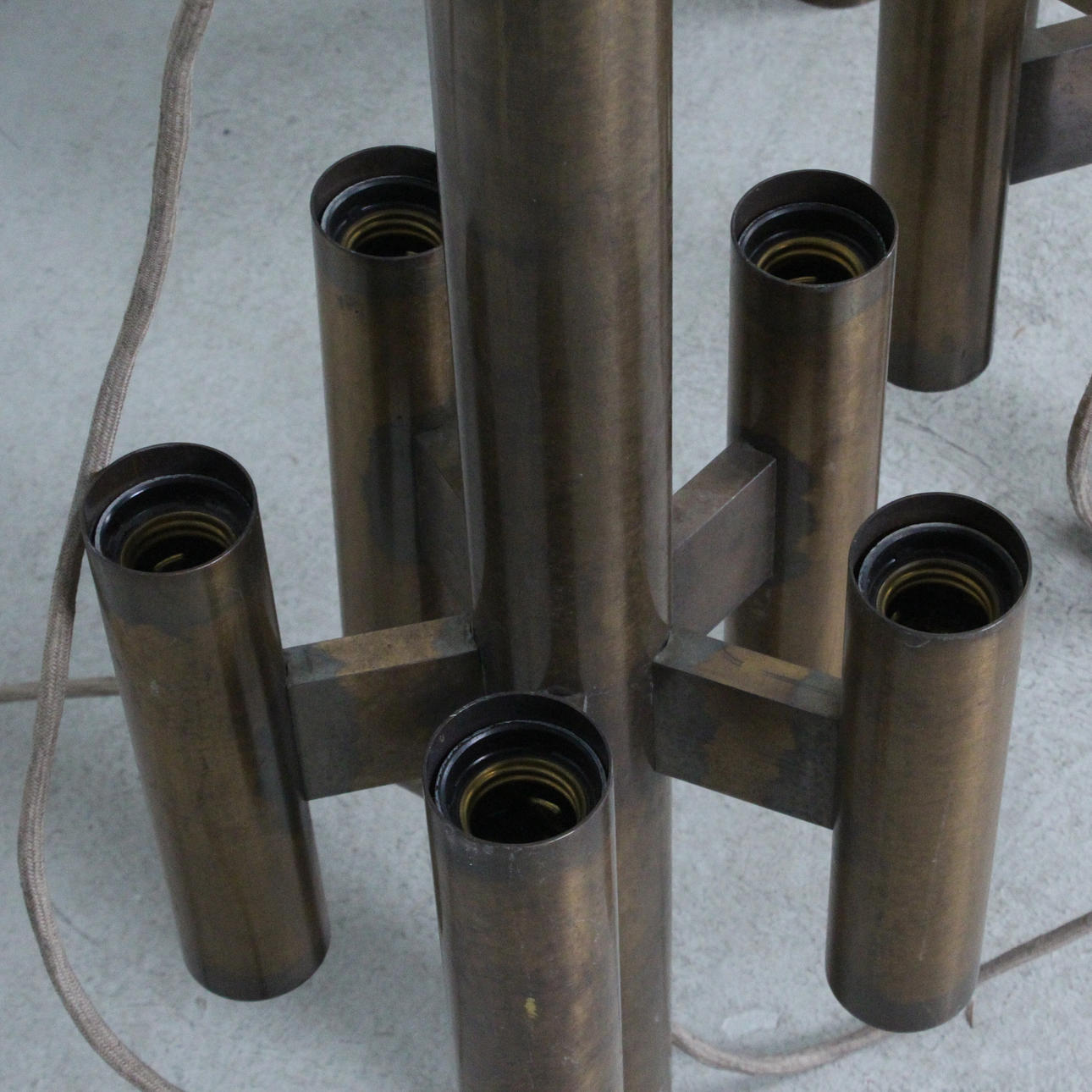Tre messingloftlamper, Gotthold Schönwandt værksted, to lamper med 10 brændere/en lampe udstyret med 12 brændere,