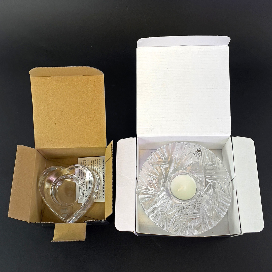 4308278. STEARINLYS LANTERNER, 2 stk. Martti Rytkönen, Lars Hellsten. Orrefors, i original emballage.
