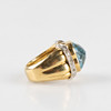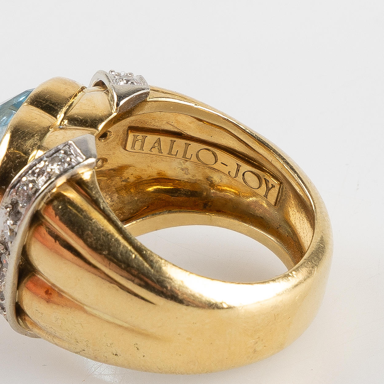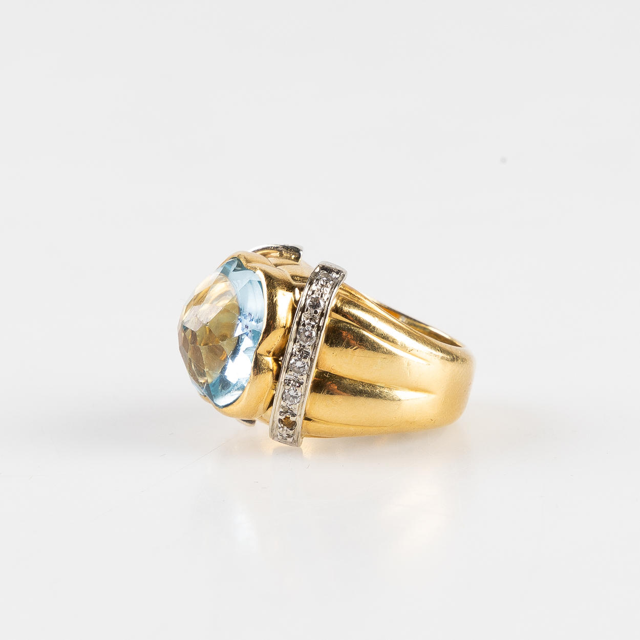 Akvamarin med ridser, mikronmærker og slid på nogle slibende kanter.
