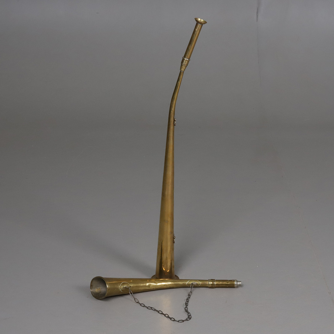4309434. Jagthorn, 2 stk. messing, 18./20. århundrede.