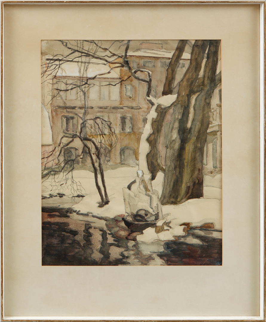 4309980. ERIK LAMM. Vinterbillede med husfacader, akvarel, signeret.