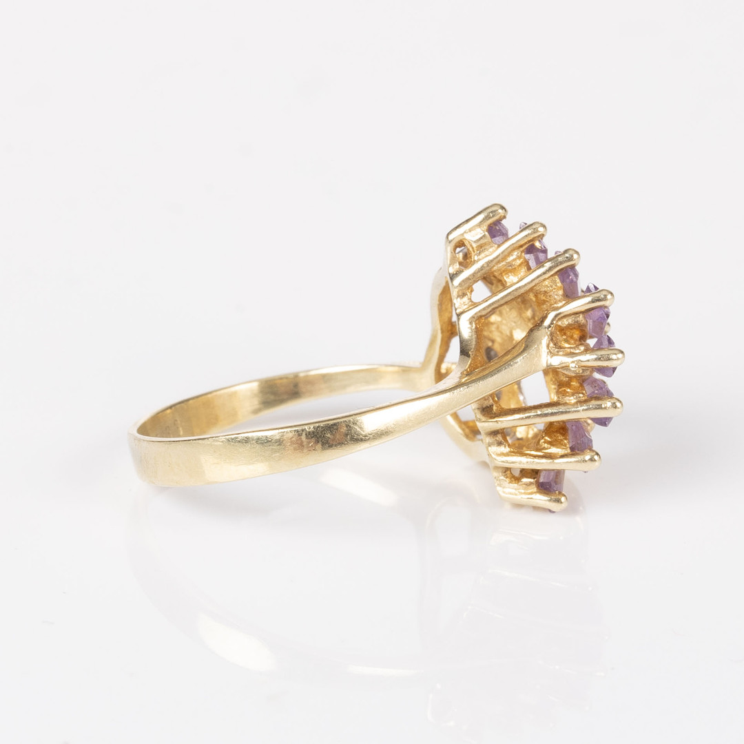 4310450. RING, 14K guld, lyserøde og hvide sten.