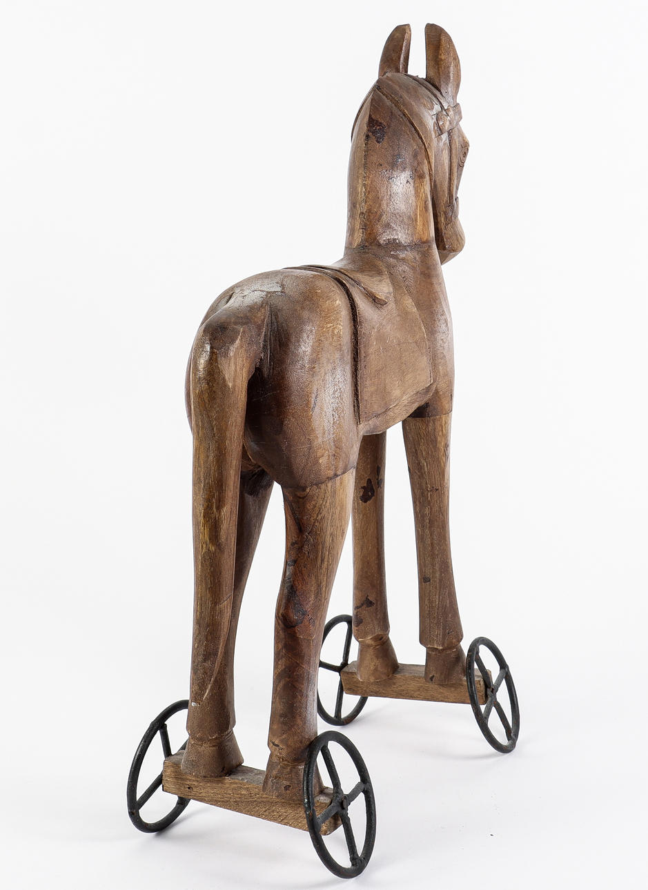 HESTETRÆ med metalhjul.