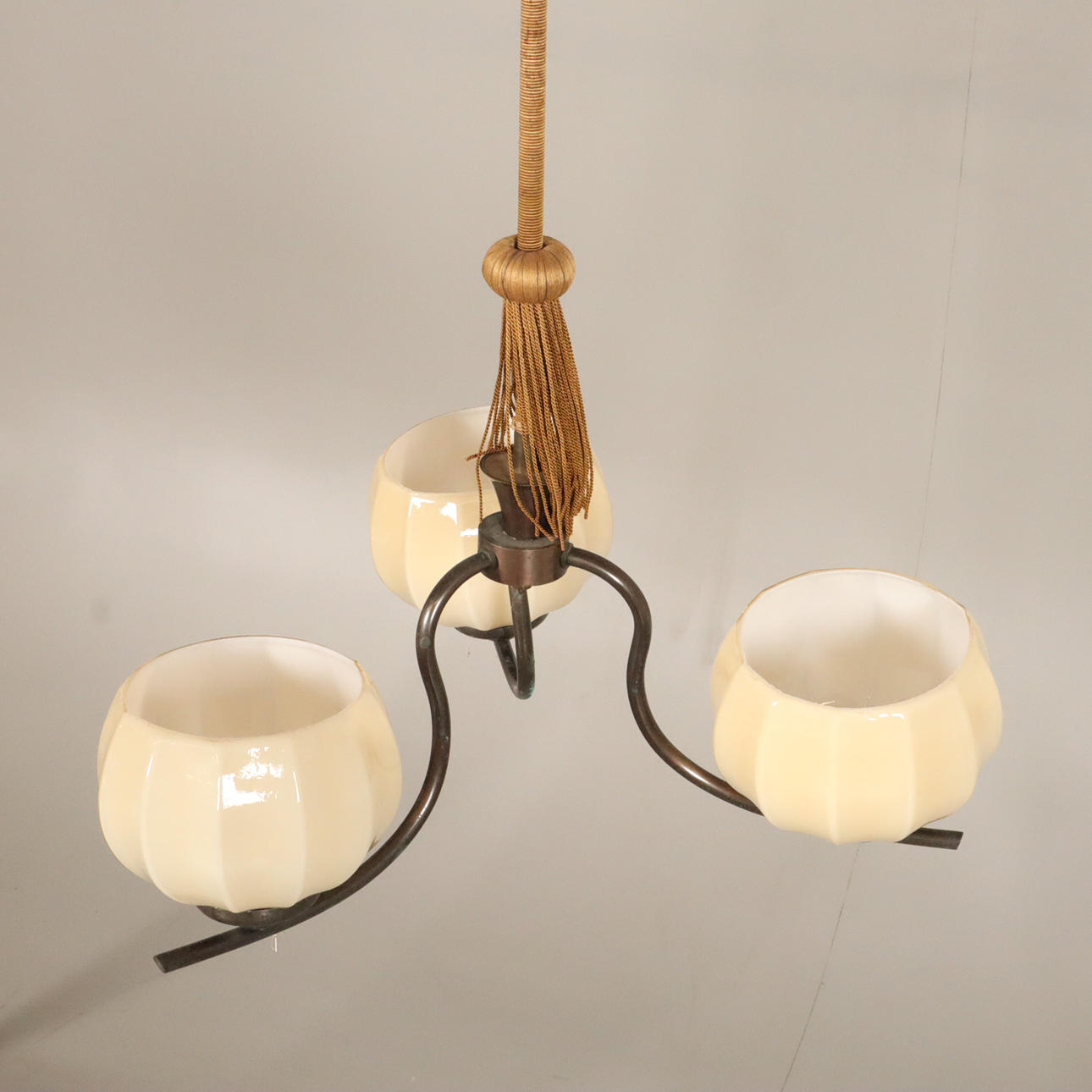 4311455. LOFTLAMPE metal med glaskopper ca. 1940'erne.
