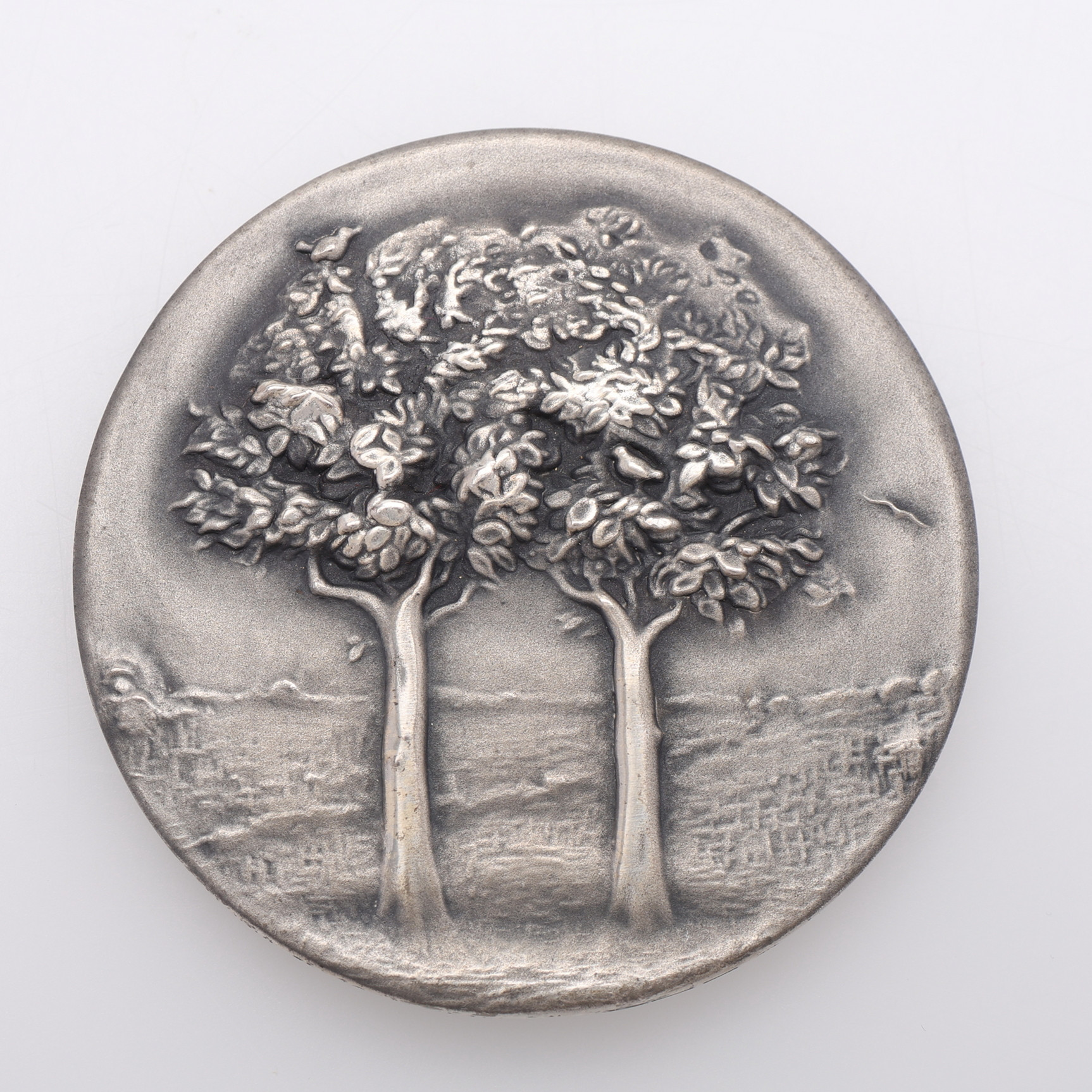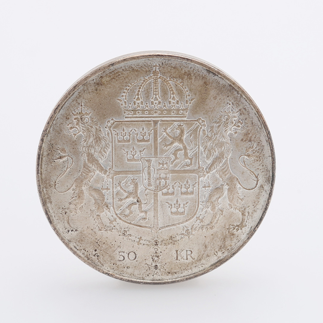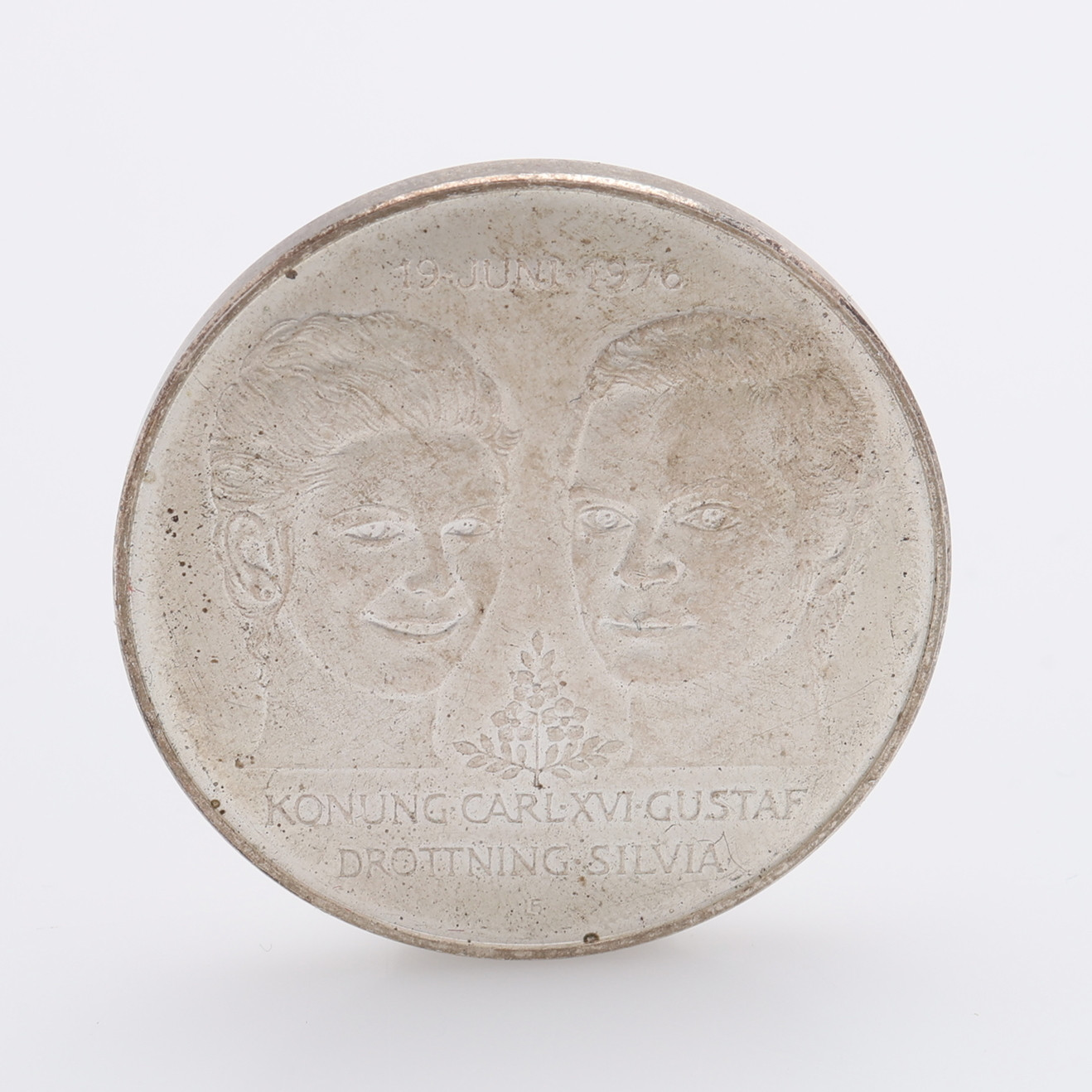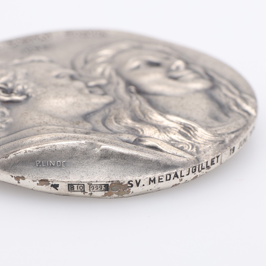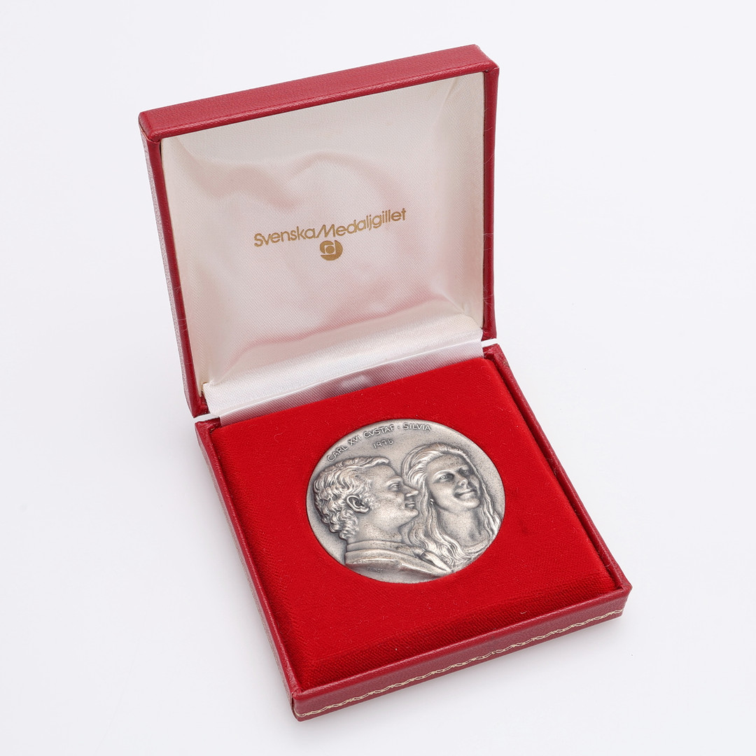 4312132. MINDEPLADE OG 2 SØLVMØNTER.