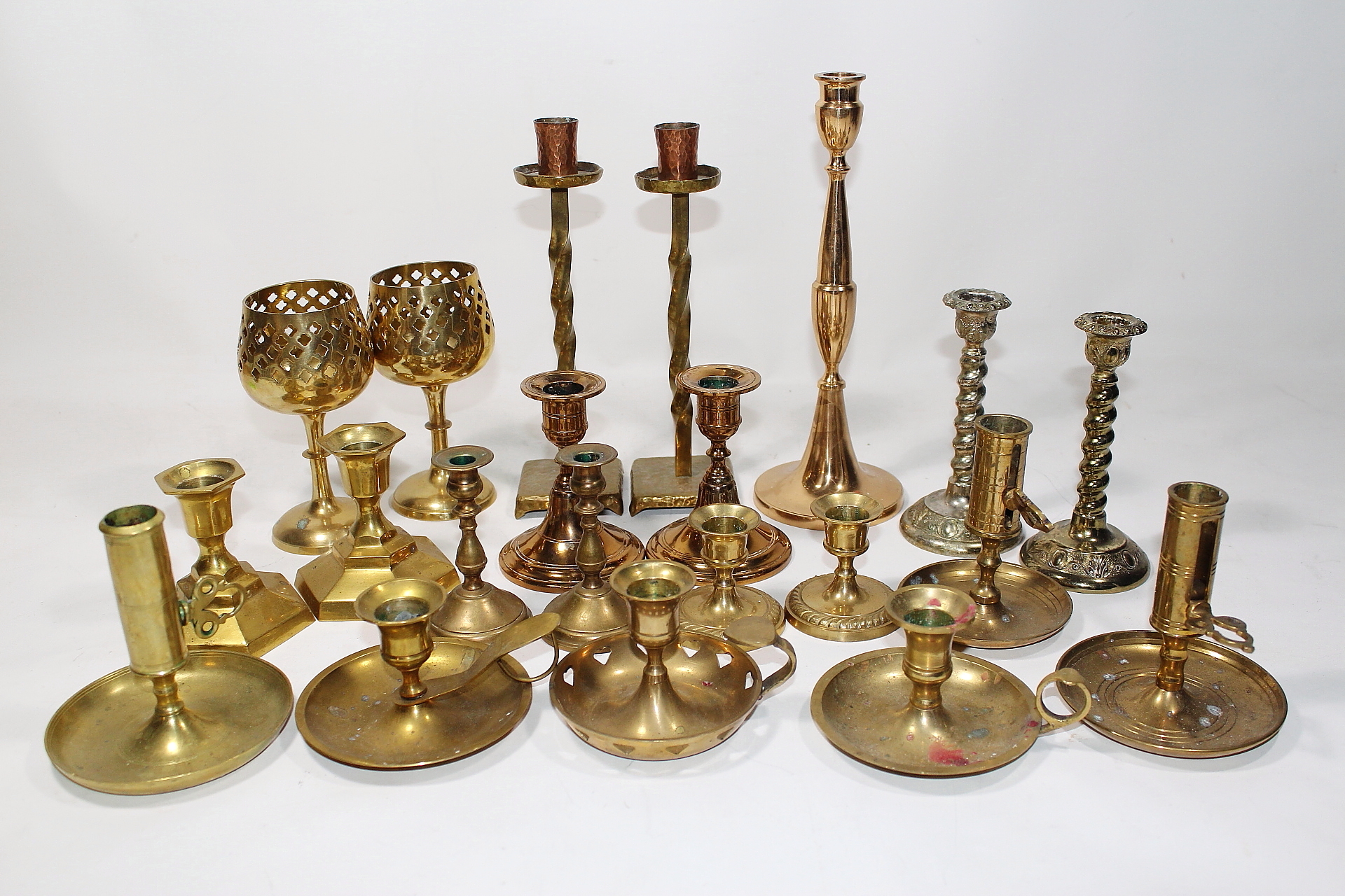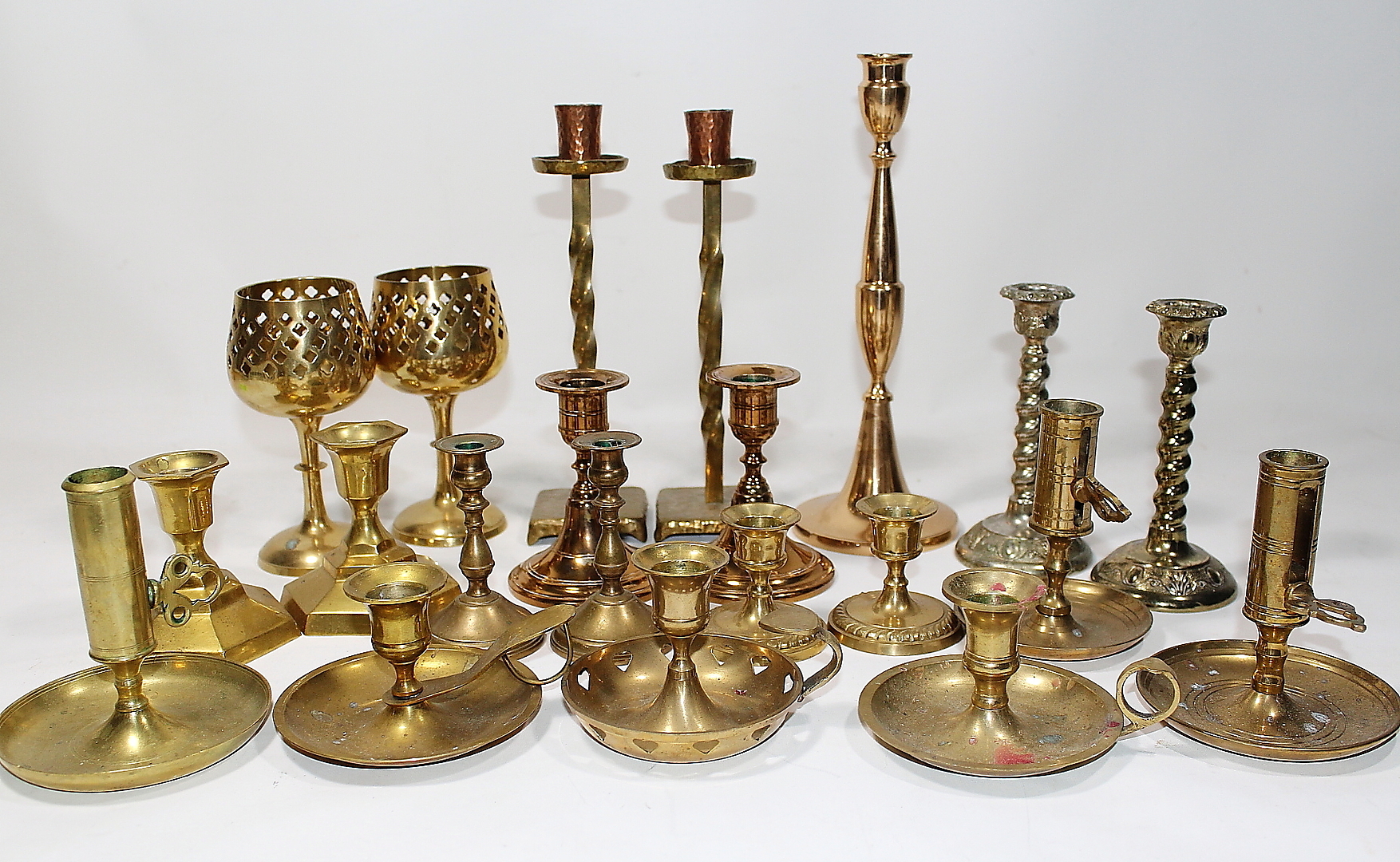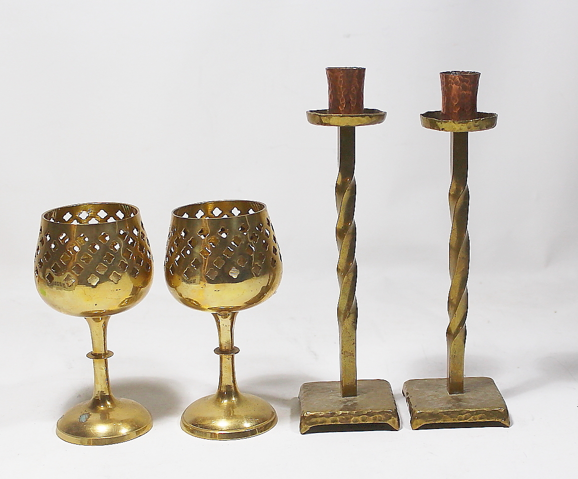 431226. Sæt, lysestager, messing og malm.