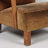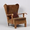 Øreklapstol/lænestol, velour og egetræ, dansk møbelproducent, Danmark, 1900-tallets midte.
