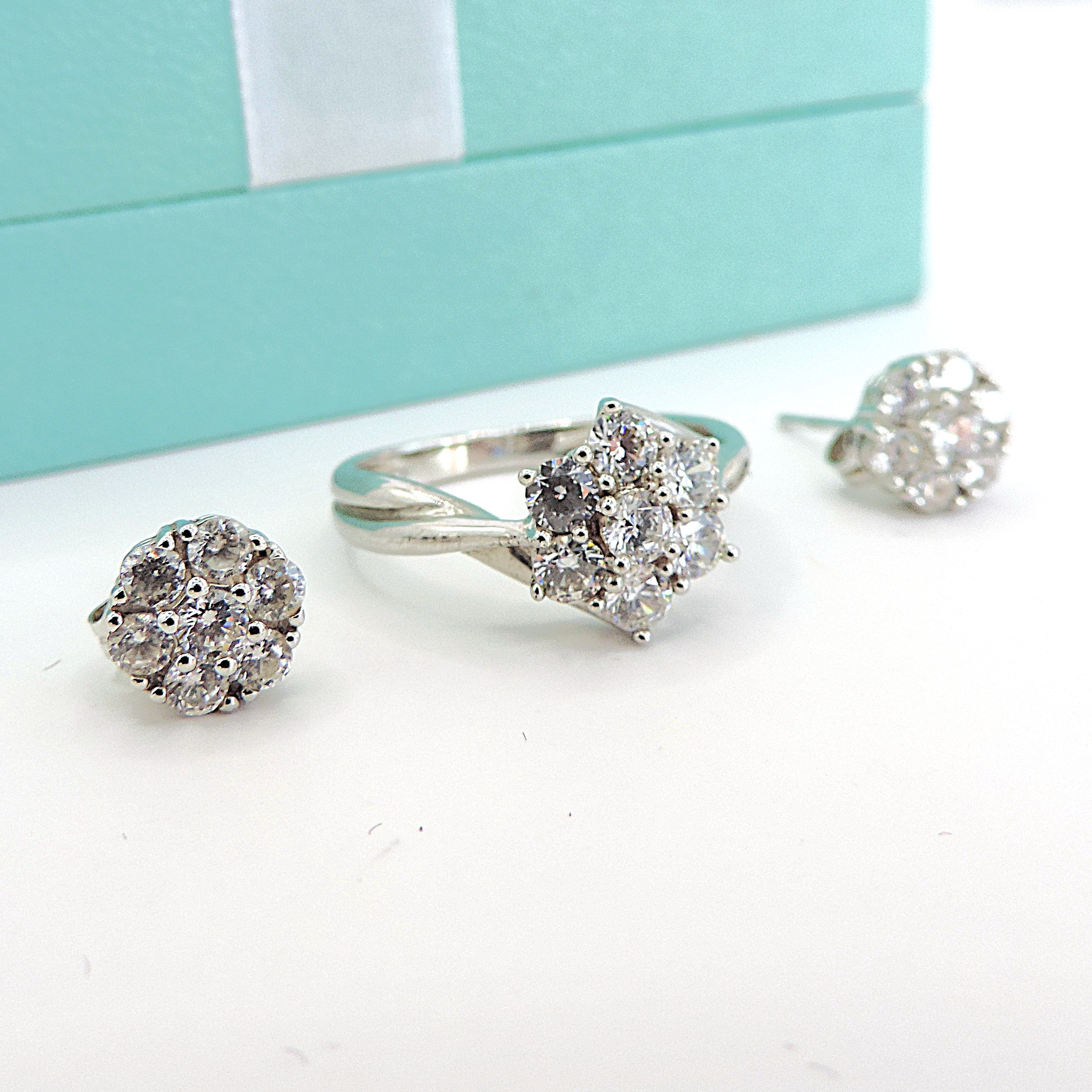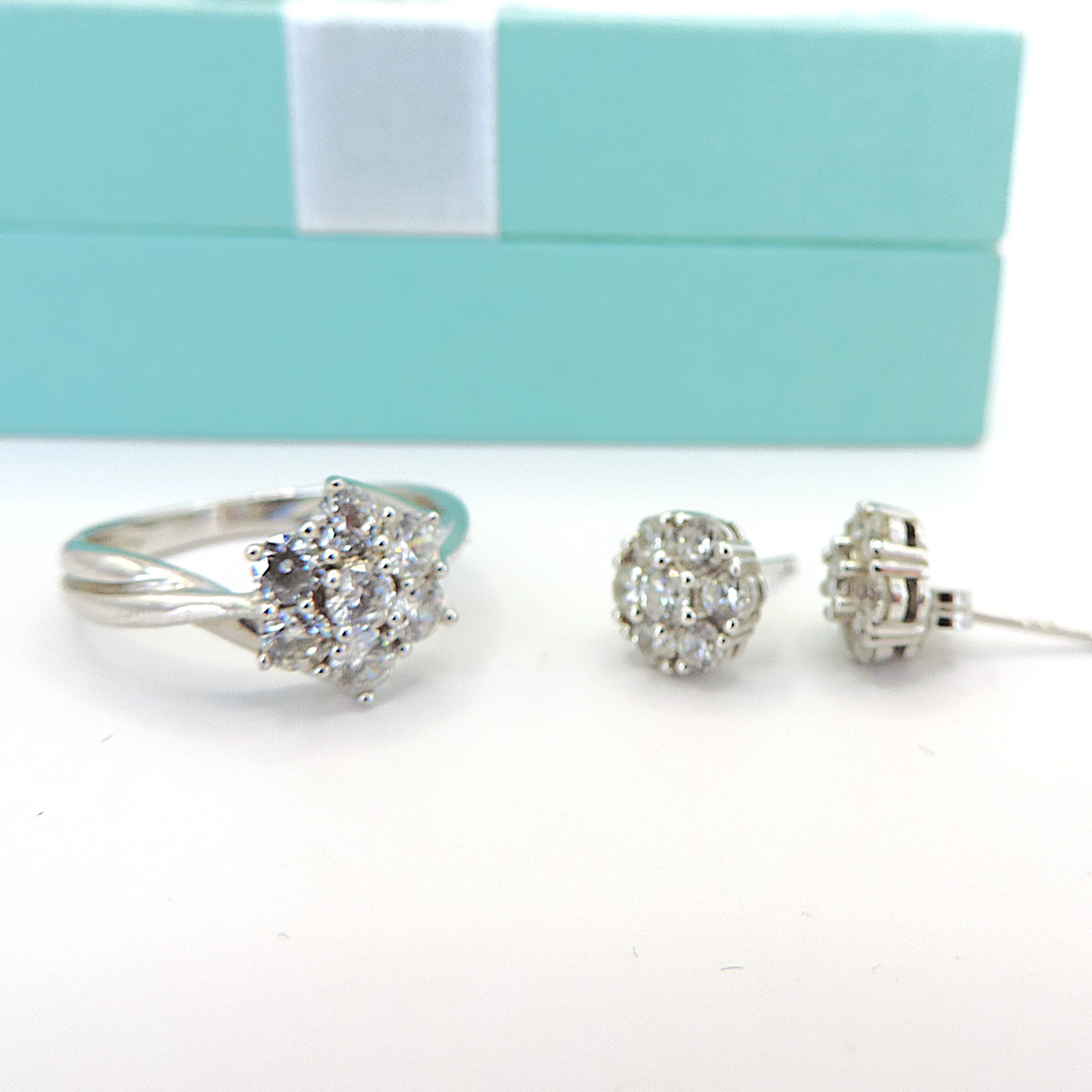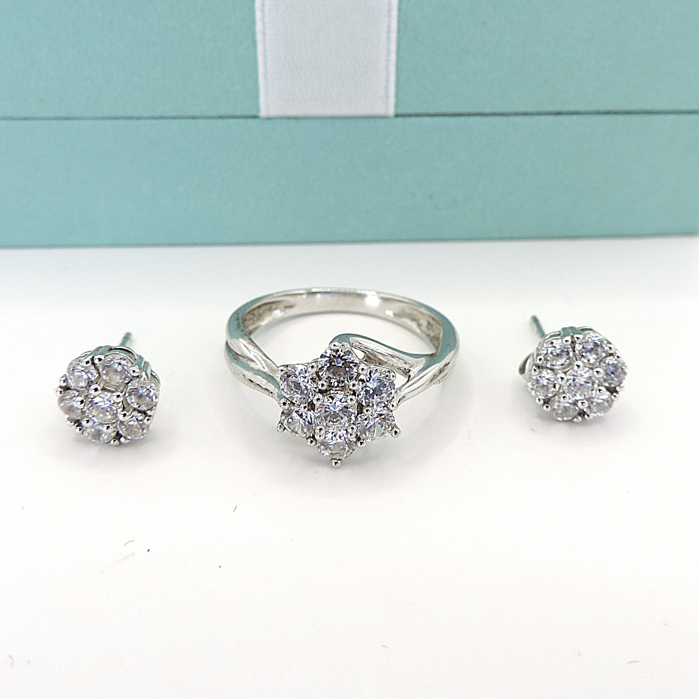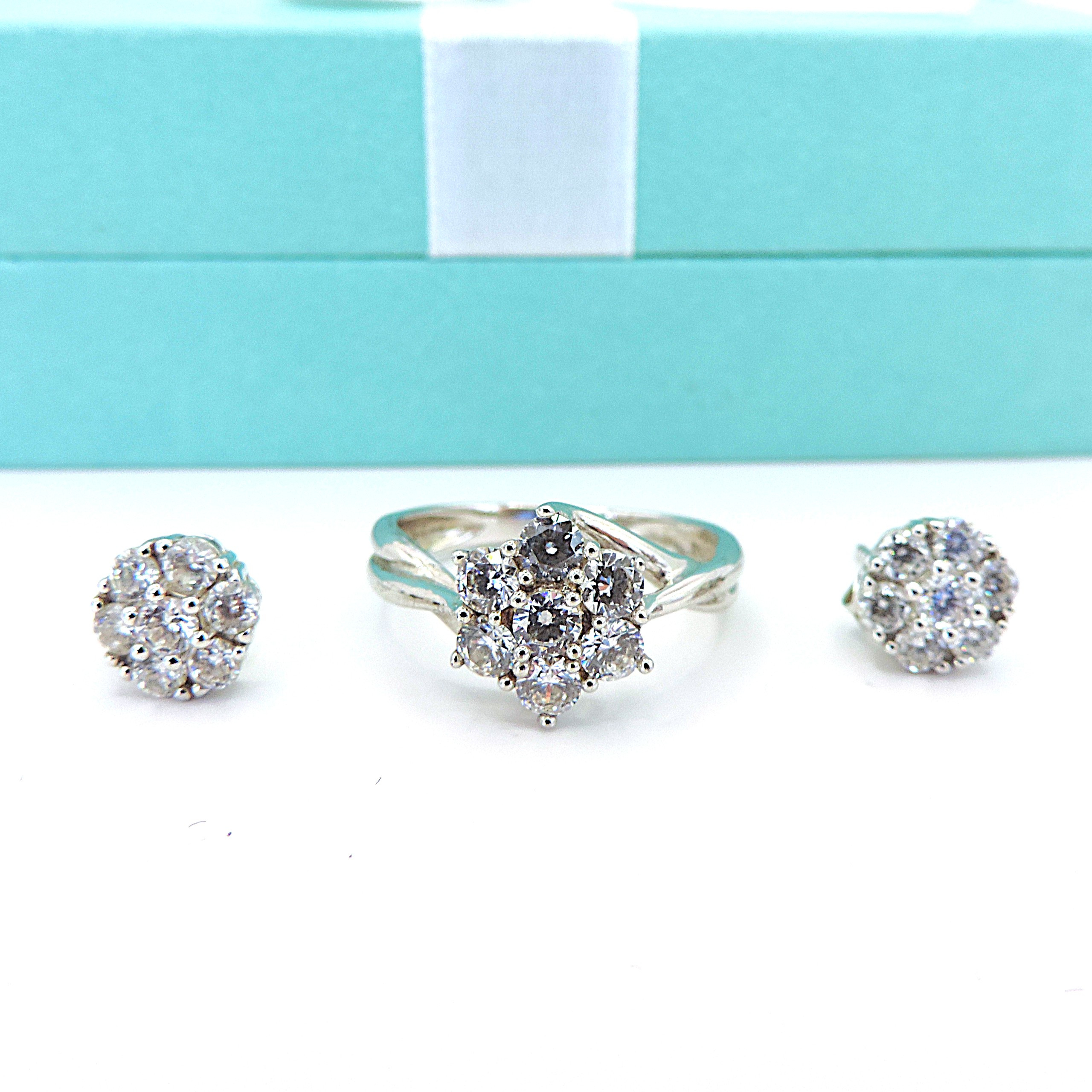 4314999. STERLINGSØLV SIMULERET DIAMANT RING & ØRERINGE.