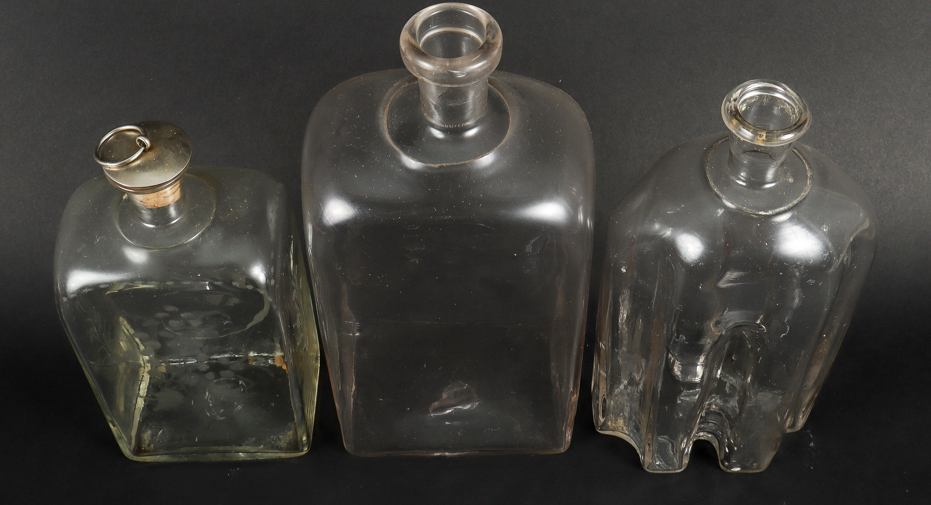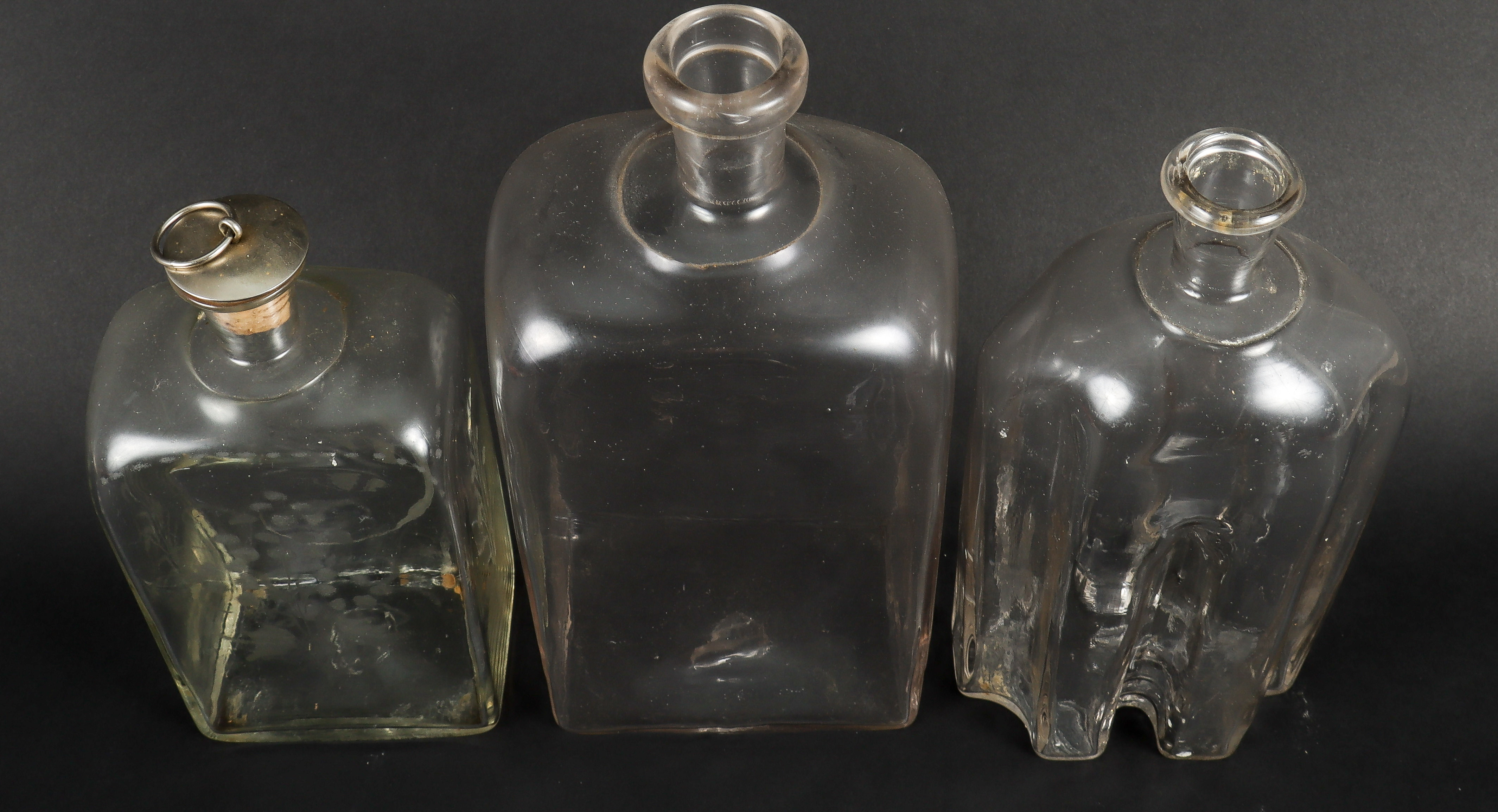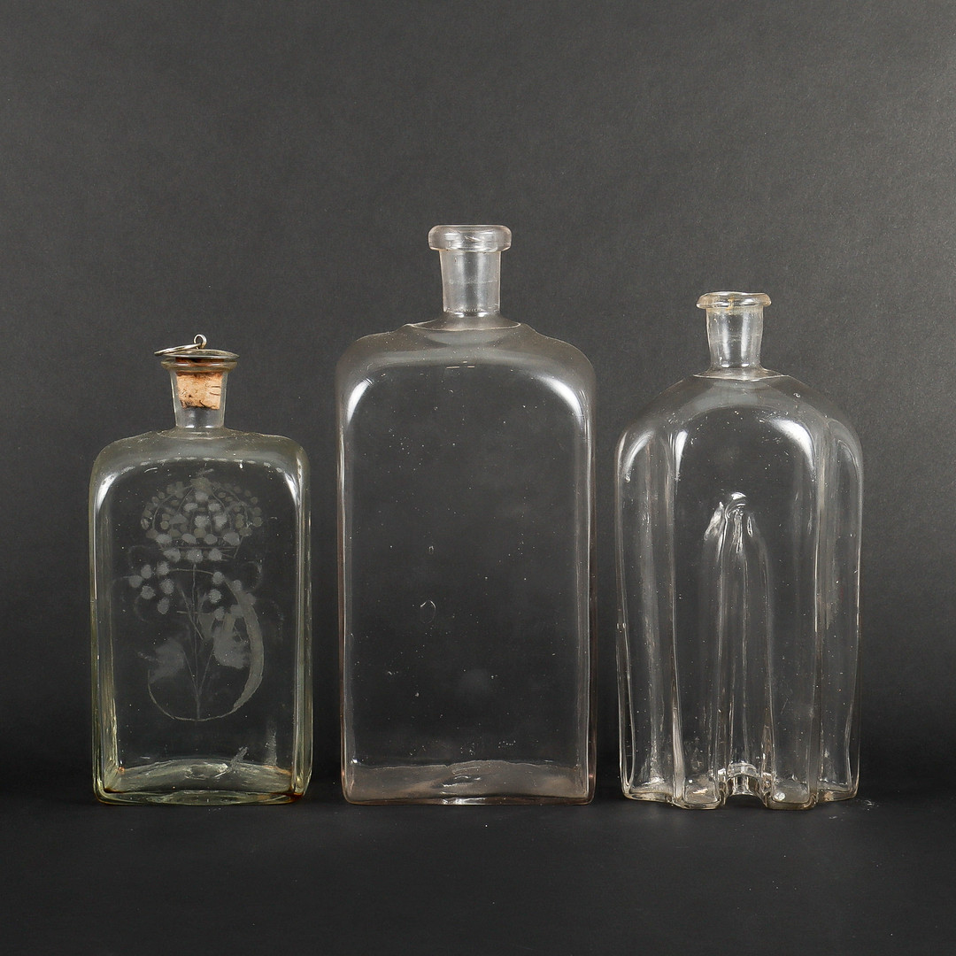 4315350. 3 flasker brandy, 19. århundrede, blæst.