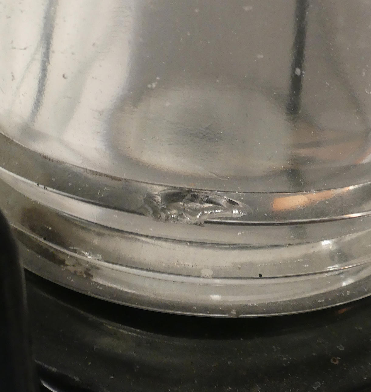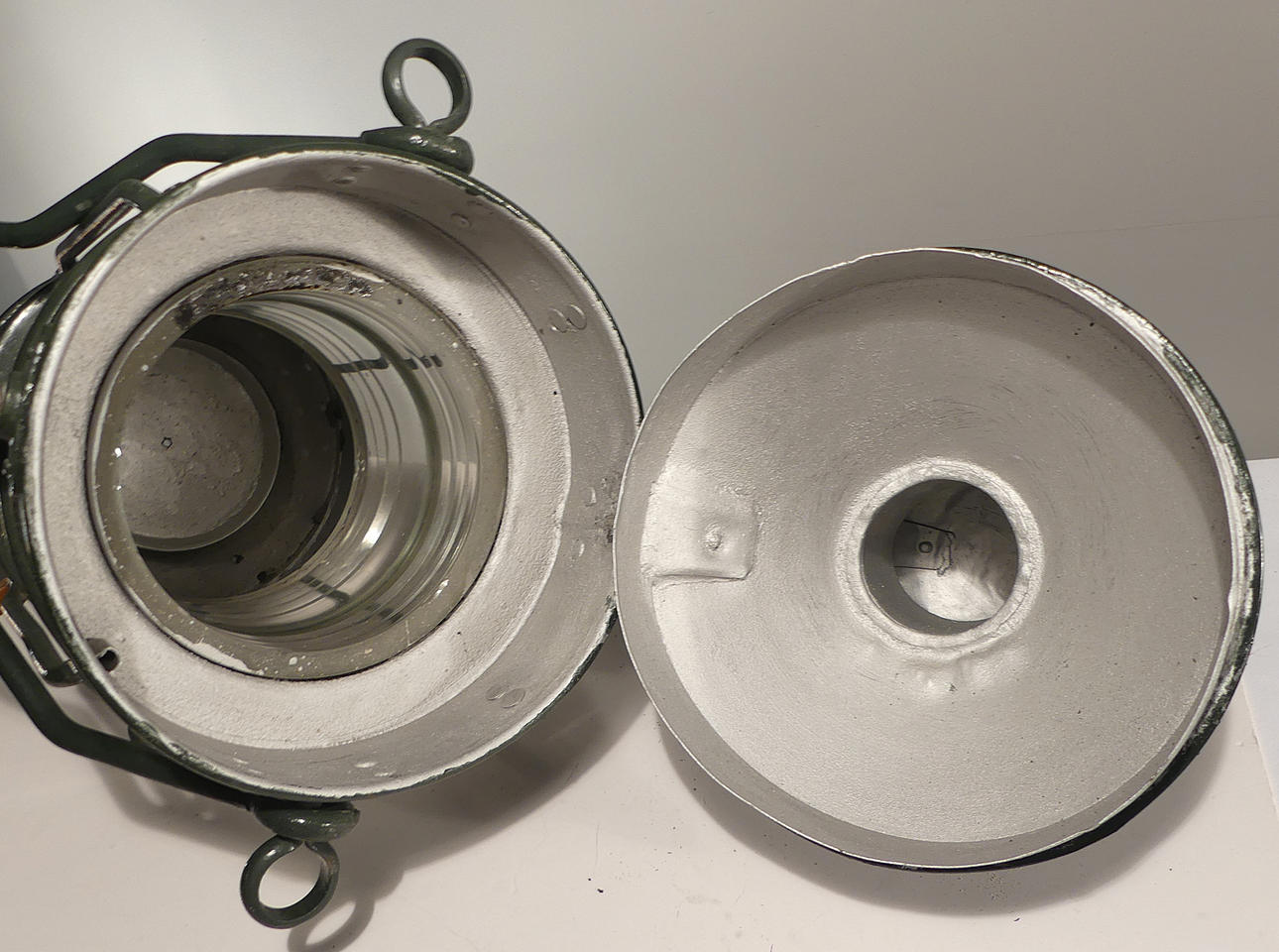 Glas med afstødning og spåner, metal med buler, overfladesnavs, aldersrelateret slid, ingen funktionsgaranti ydes.