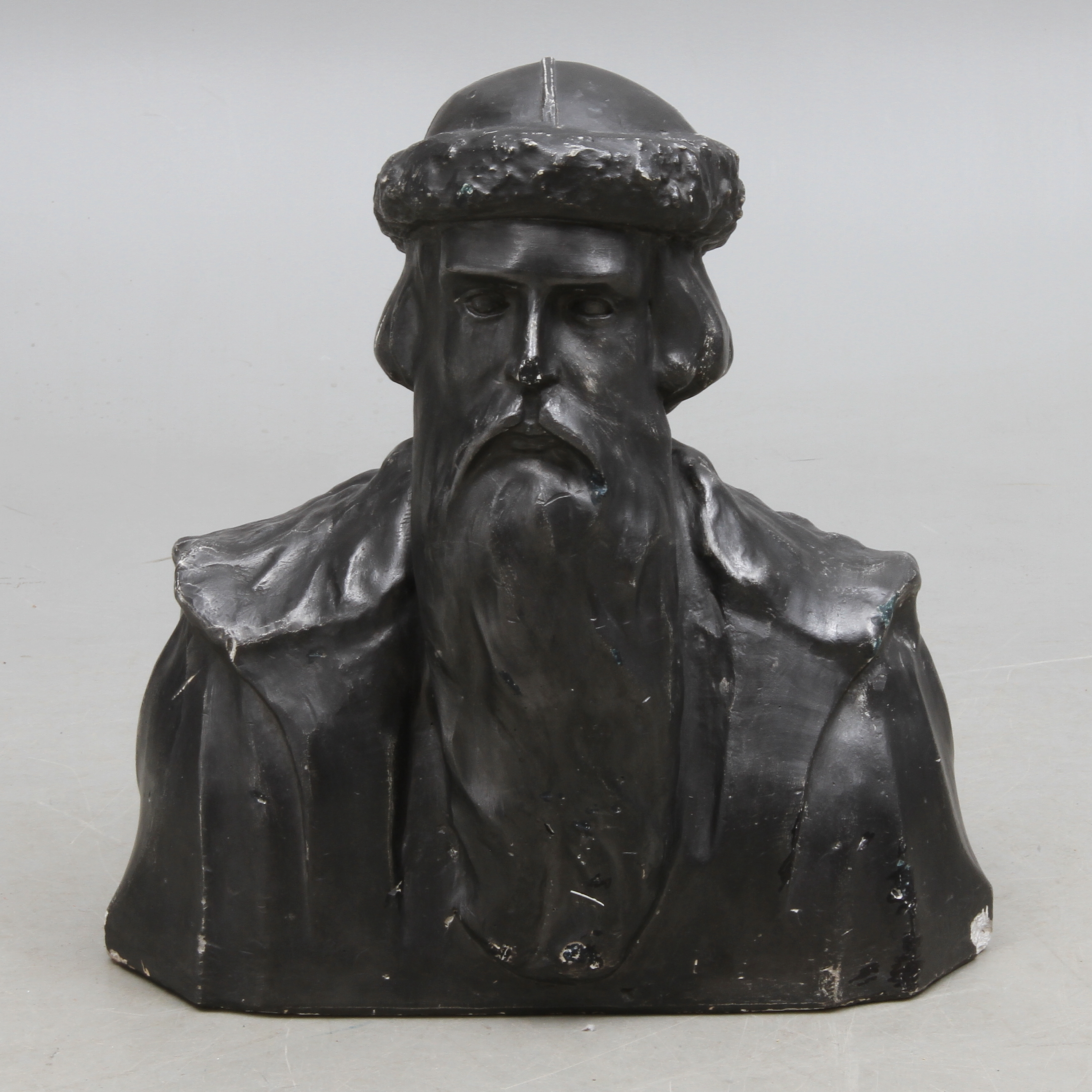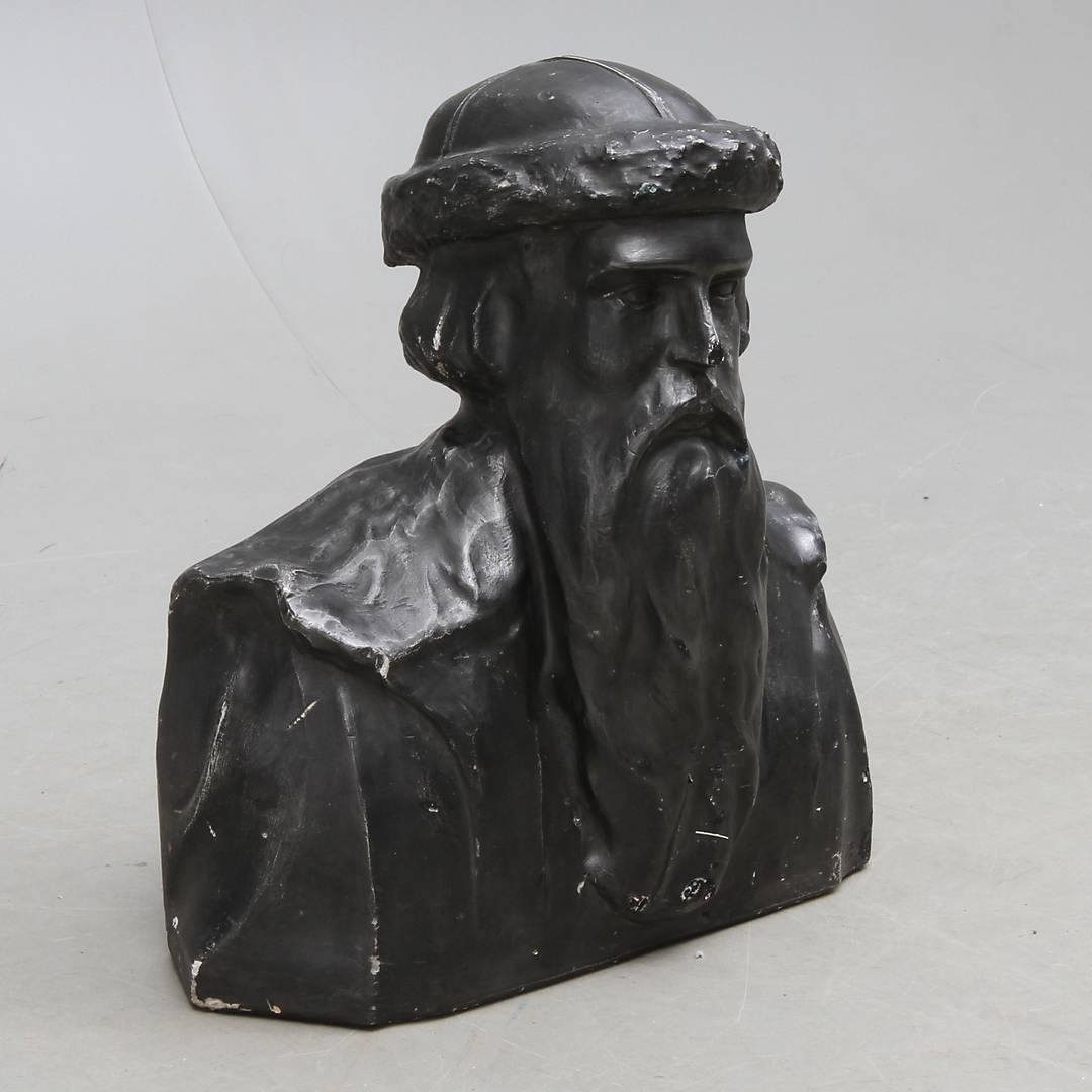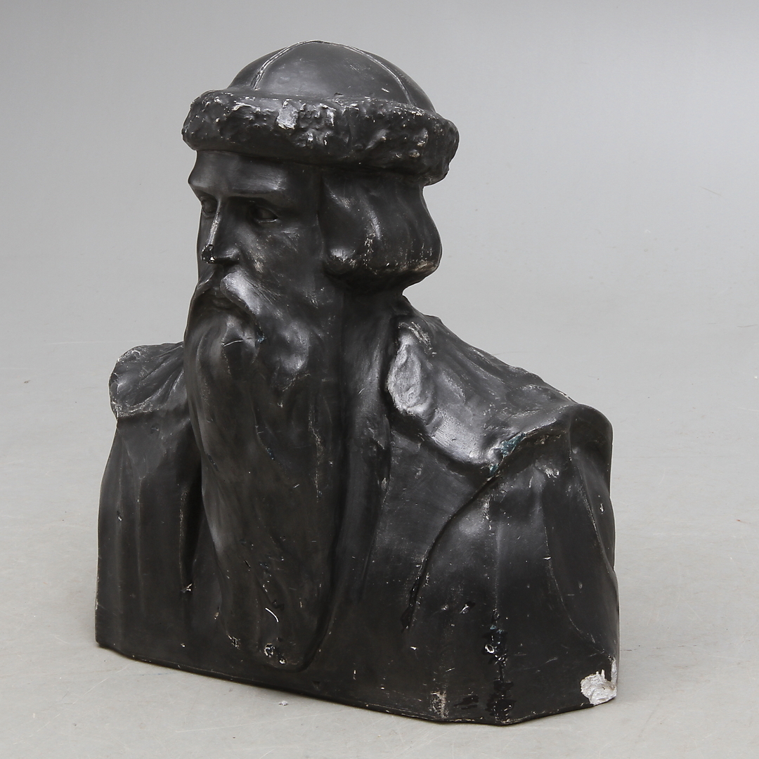 431665. OIDENTIFIERAD KONSTNÄR. Buste af sandsynligvis Gustav Vasa, gips, usigneret.