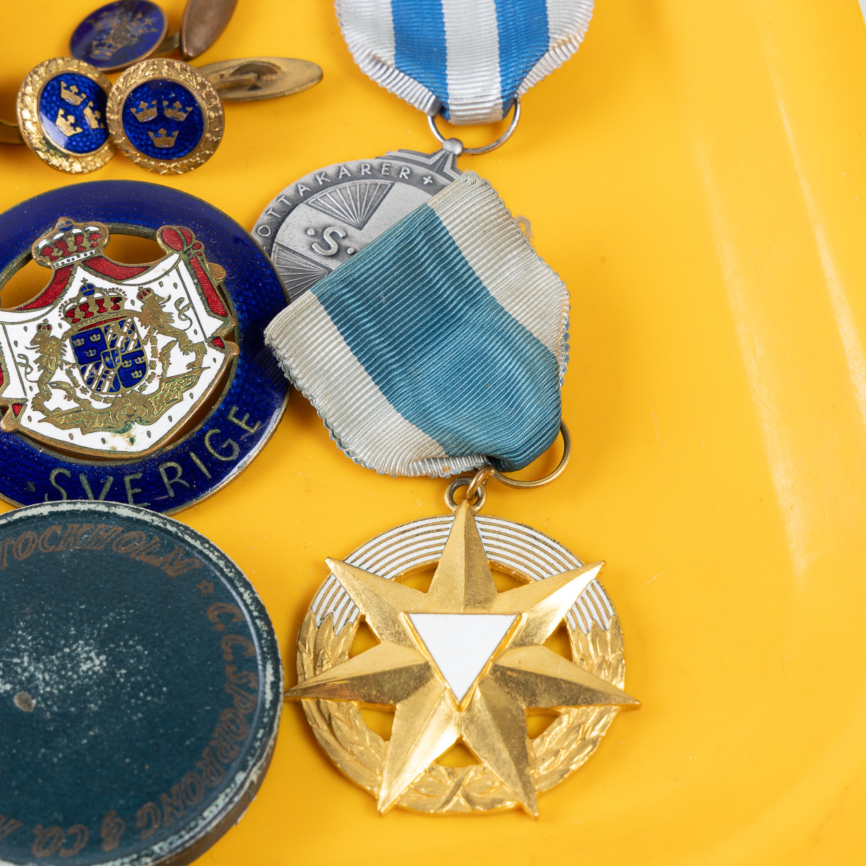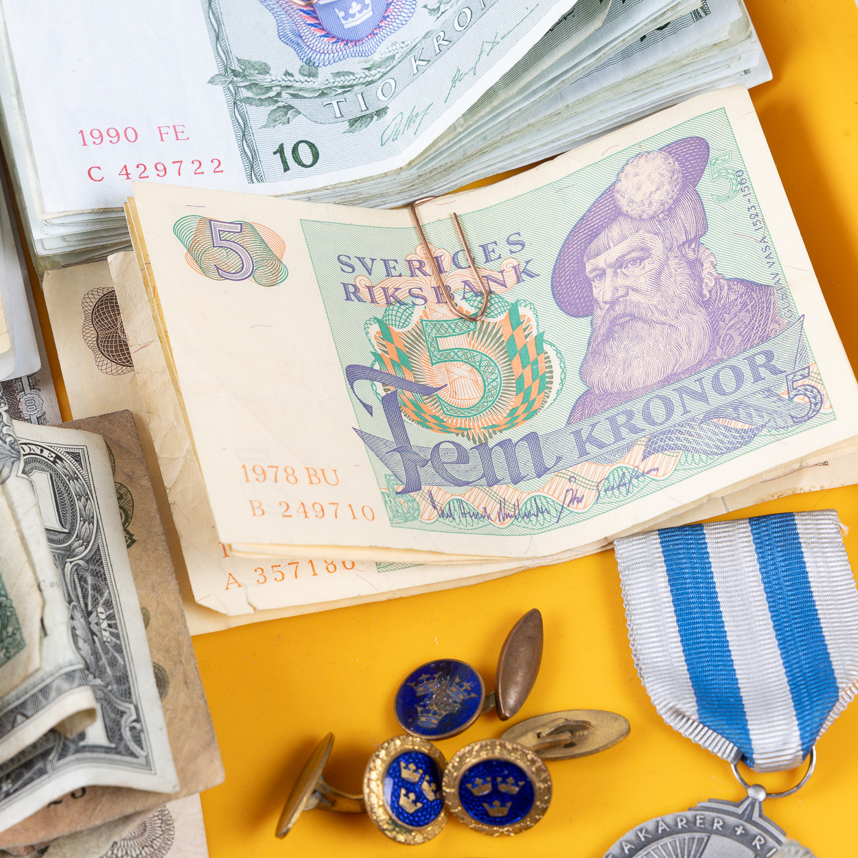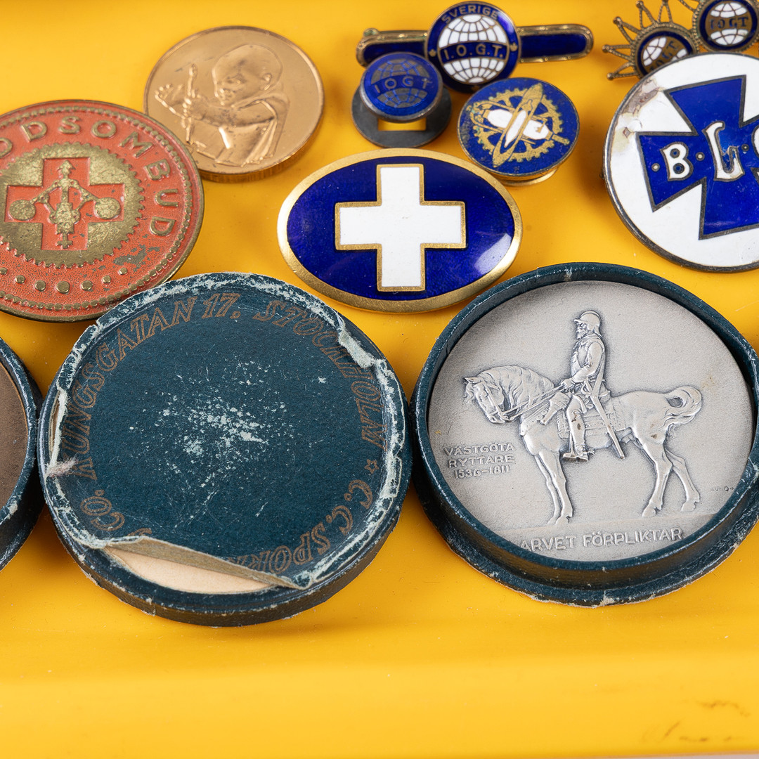 4316709. SAMLING AF MØNTER, PENGESEDLER, BADGES OG MEDALJER.