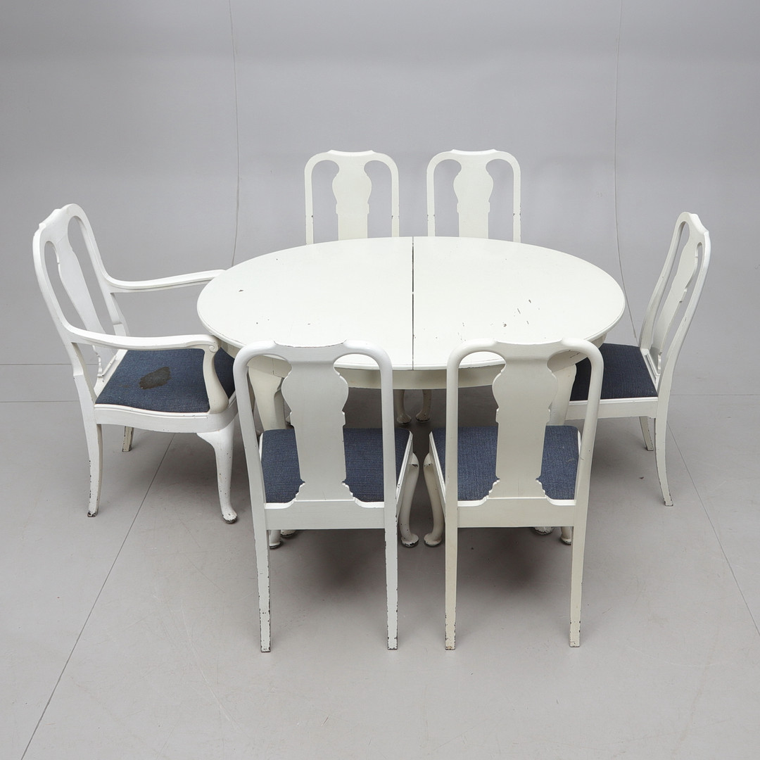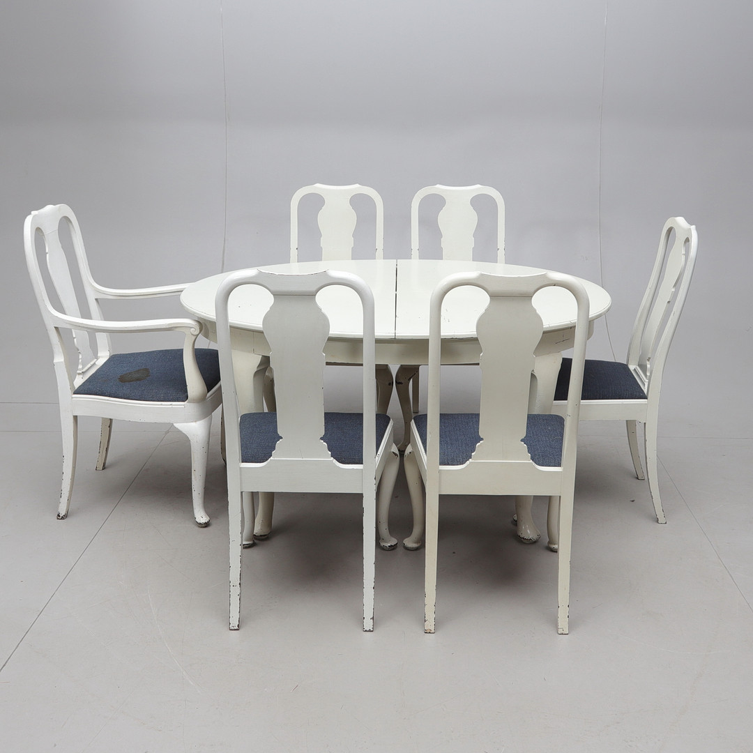 4318975. Spisegruppe, 7 dele, bondrococo stil, 20. århundrede.
