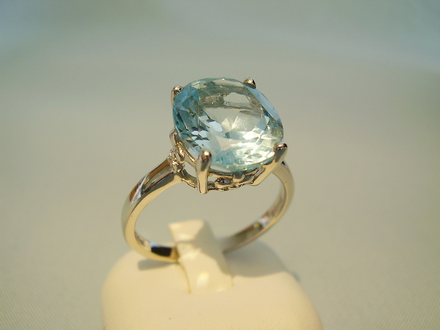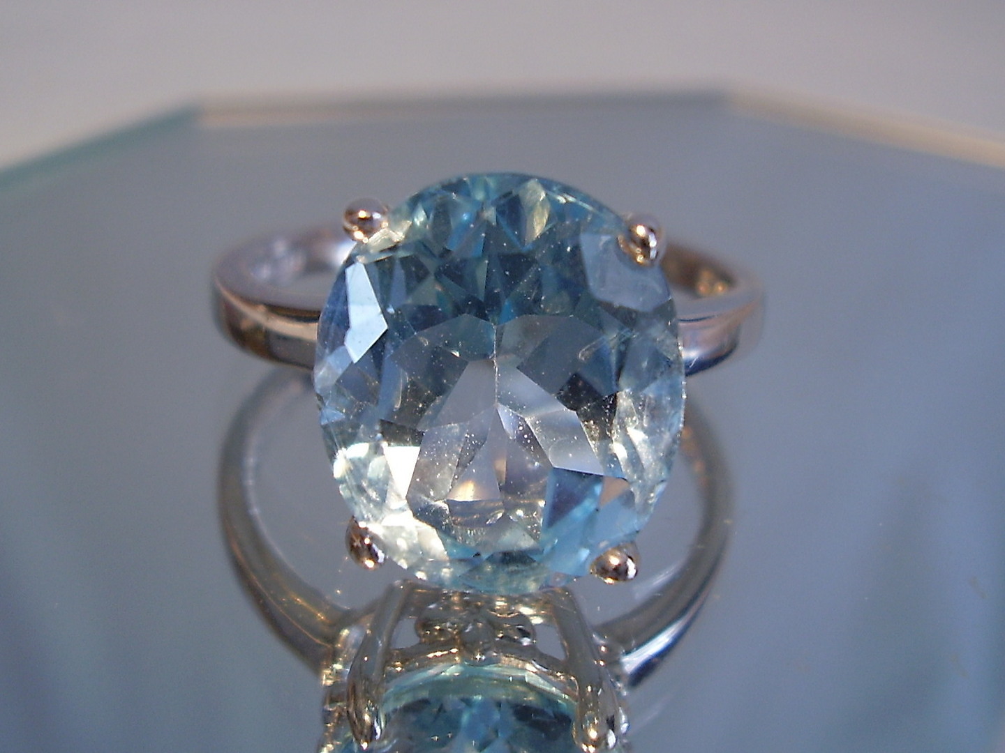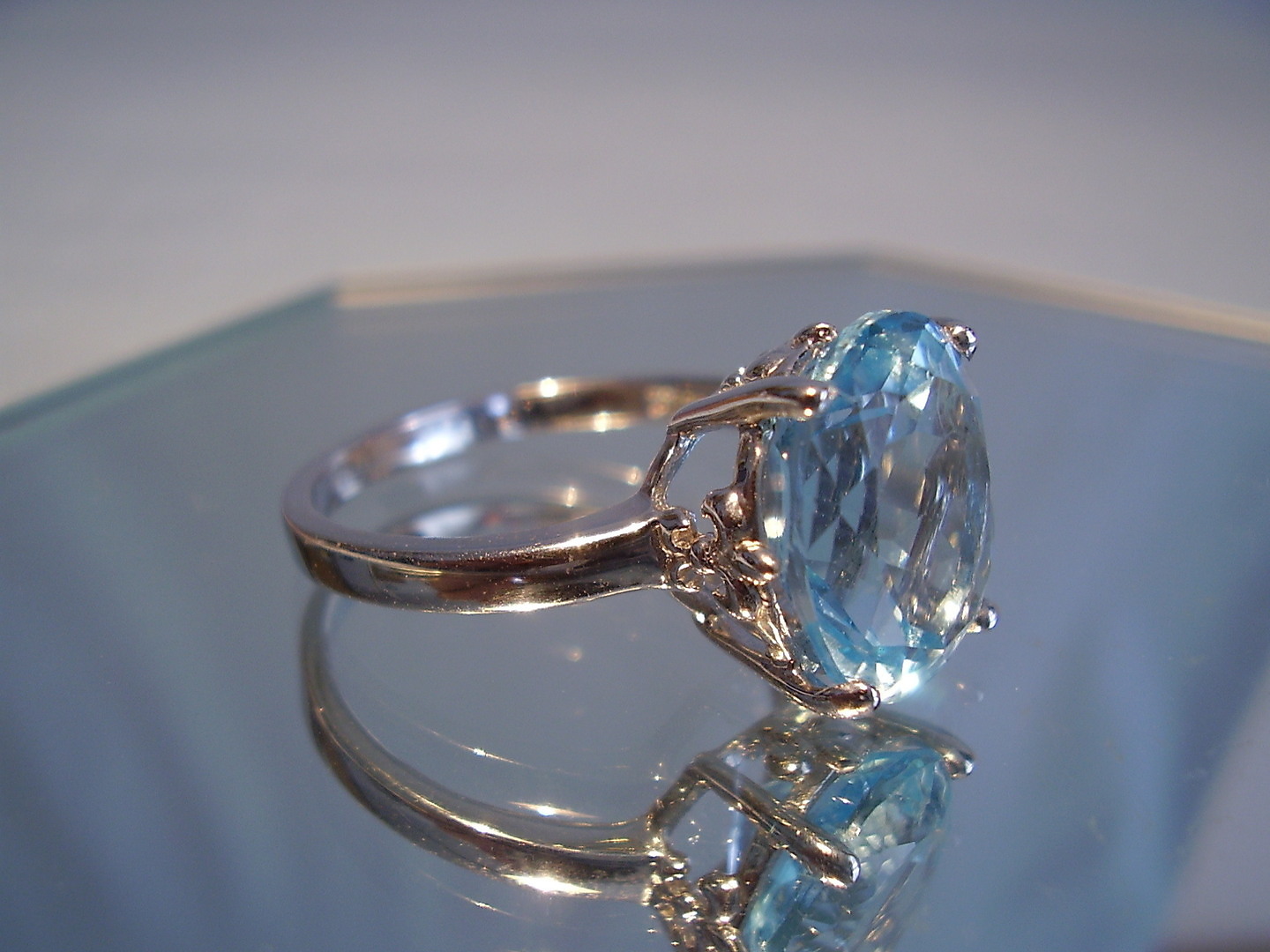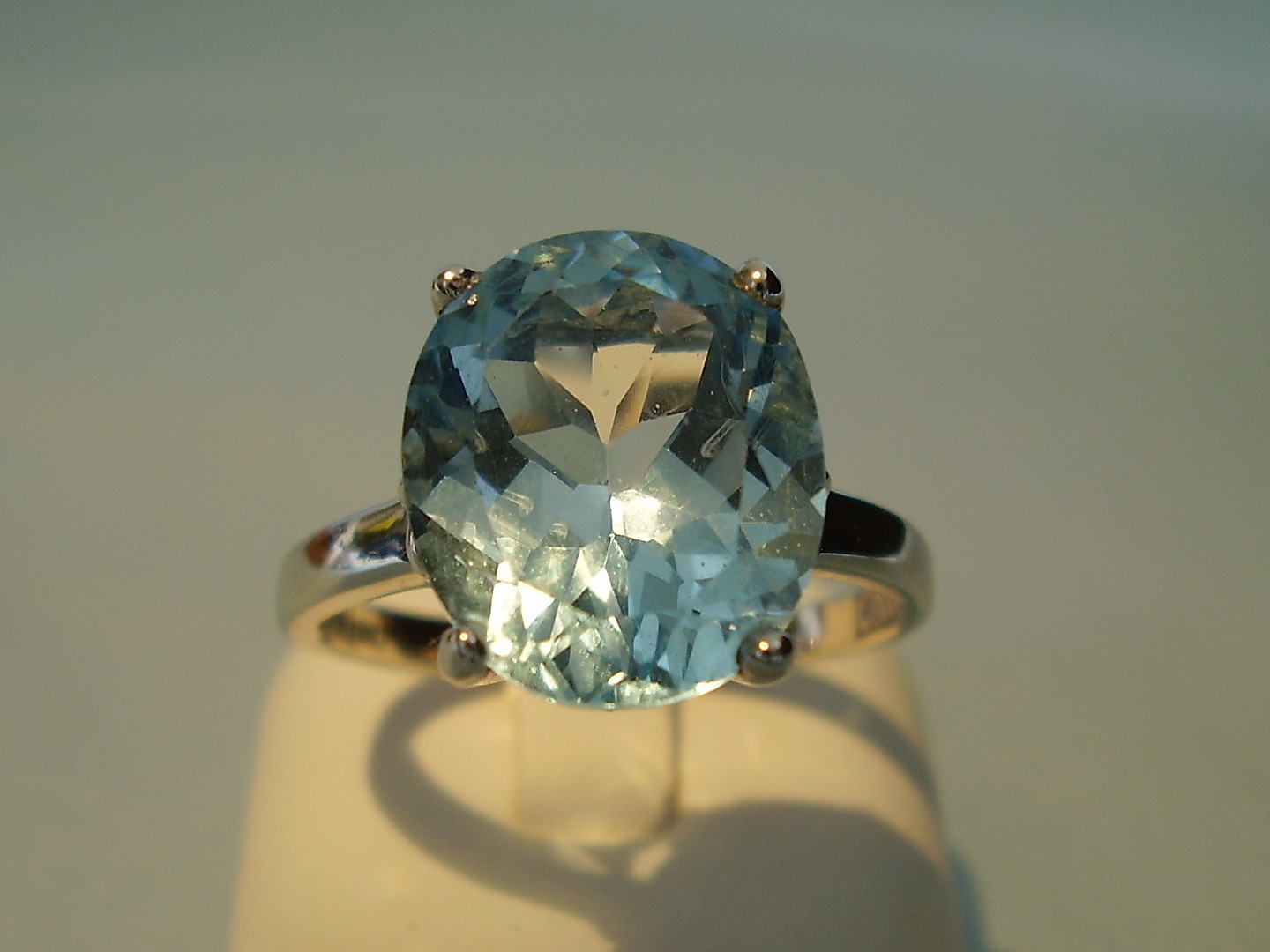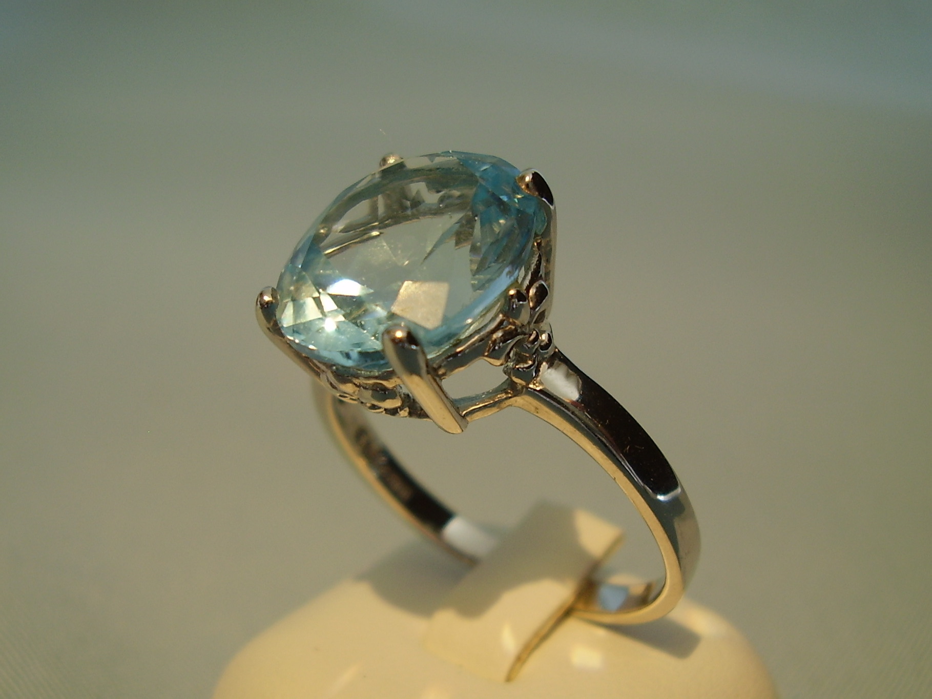 431989. BLÅ TOPAZ RING 5 ct. signeret D. Sigal.