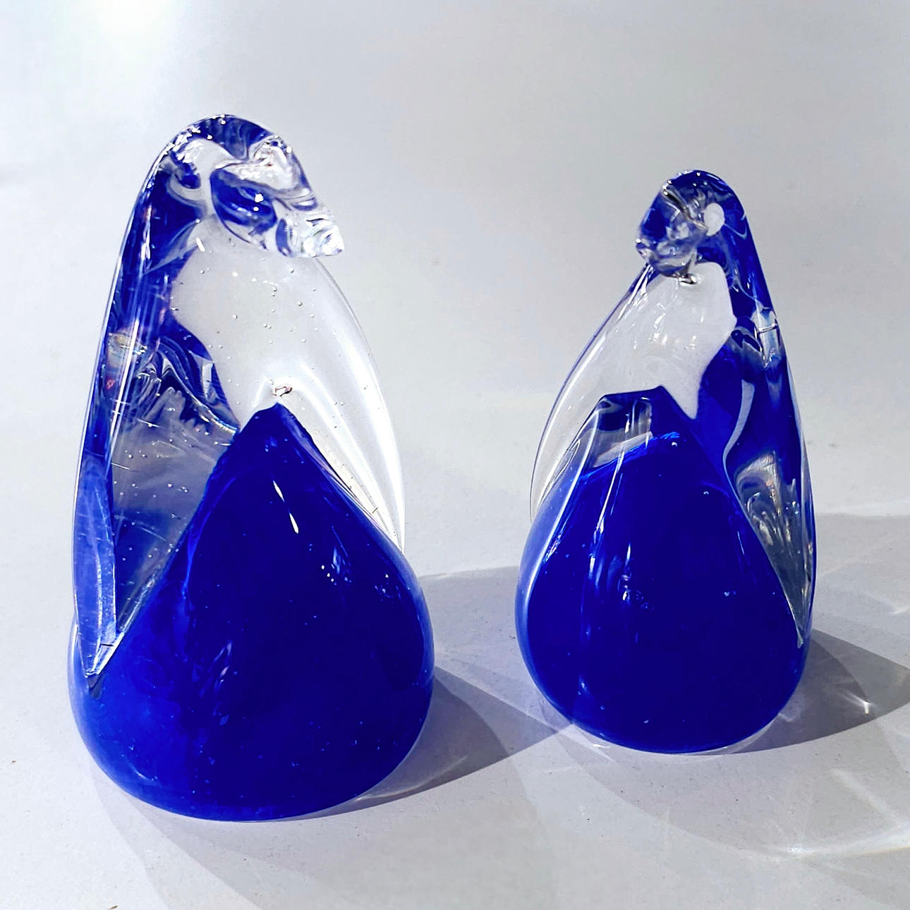 4320284. Fire krystalstykker med dyremotiver i koboltblå.