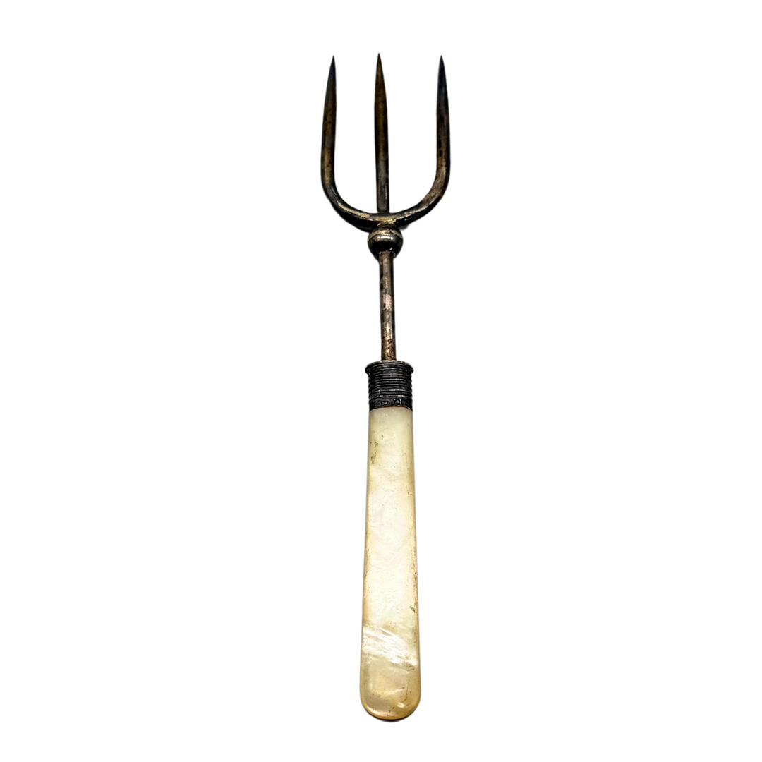 4321613. SØLVGAFFEL MED PERLEMORHÅNDTAG, STEMPLET.