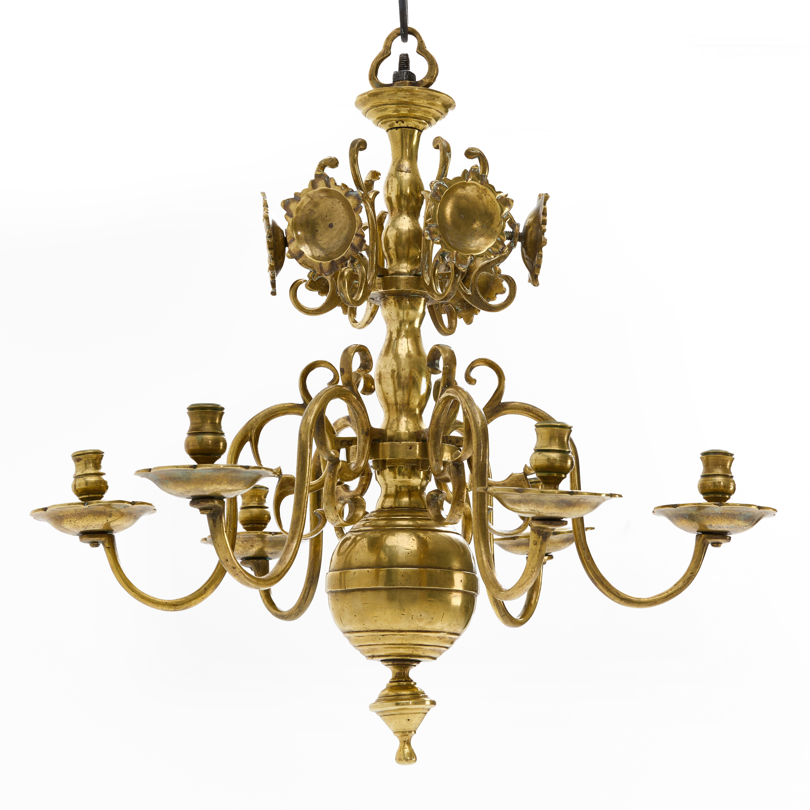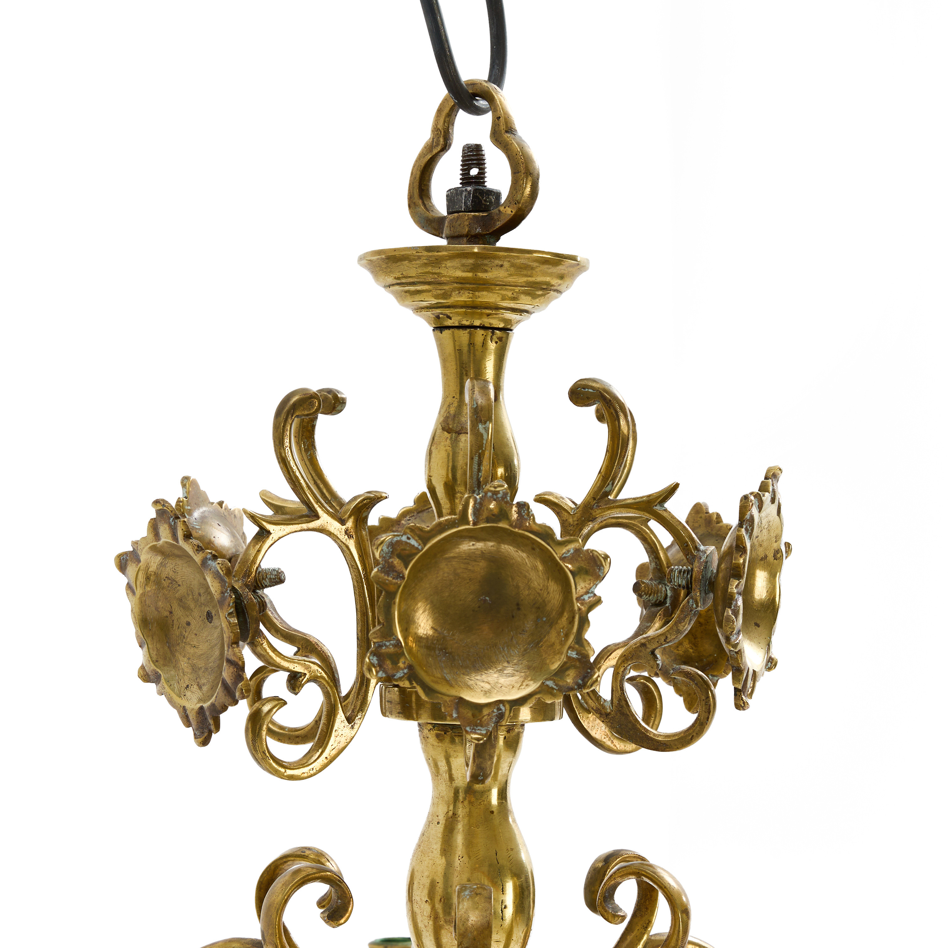 4322110. LYSEKRONE, barok, messing, 6 lysarme.